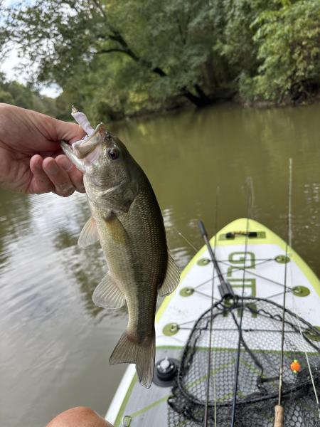 Yesterday, I went Back to the Black River backwaters with the Glide SUP. I was targeting Black Buffalo or Gar or ??? , but willing to catch whatever BUT I wasn't going to come off target just to catch a few more fish. I have to drive past multiple spots where I can quickly catch a 1/2 dozen panfish. I love the little guys, but I took a break from them yesterday. My first spot was a bust. I knew it likely would be. Changes have been made which may help in the long run but aren't very helpful in the short haul. There was a beaver dam that held back an additional 15 inches of water. I think AGFC destroyed it to allow more water drain out when they replaced the water control structure. I didn't make a single cast. I did not stop at either panfish spot. The first trip on the SUP the wind ate me alive. This trip the wind wasn't projected to be too bad AND I brought counter measures. The water is clear, but the clouds hosed me. Occasionally, the sun would come out and I could see like I needed to see, but too often it was cloudy. I got all my stuff loaded and got going on the SUP. I had a small black fly on for Buffalo and common carp tied on my 6 weight. I had a white zonker on my 8 weight for bowfin. Early on, a cast straight ahead of the board with the zonker just got crushed. A big black crappie Gomer Pyled me by eating the 4 inch zonker. I was off to a good start. It did not continue that way. I eased along looking and looking and looking. I saw gizzard shad, chain pickerel, some really nice largemouth bass, lots of bluegill, a few gar, and buffalo and carp. ALL the Buffalo and carp I saw were cruising NOT eating. I did not see any bowfin, but I know they are there. I gave it two hours total. I caught a couple of bluegill blind casting my carp fly. I hooked and quickly lost a BIG LNG on the zonker. I saw a HUGE snapping turtle. I wasn't close enough to tell the species, but from the size alone it likely had to be an alligator snapper. REALLY REALLY BIG. I saw it from a long way off and tried to close the gap, but it submerged in a deep section of the canal and was gone. I relocated to my final spot; I had initial success followed by my usual misadventures and frustrations. I got a nice largemouth on the zonker. A couple of minutes later I got my first bowfin of the day. A nice female that pounded the zonker. Sleigh ride time. lengthy fight and infighting to get it into the net. I can't measure the bowfin accurately while on the paddleboard. I didn't feel like getting all muddy by stepping off the board into the goo. I was guessing 27 inches. A little later I saw a hint of movement ahead and to the left. A quick cast got a hit, but I didn't get the hookset. I picked up and recast 10 feet further ahead and the fly immediately got inhaled again. Hook found a home that time. Another nice female. Like 25 or 26 inches. So, I tried another bowfin fly/technique with no strikes. I also started looking for carp etc . I never got a good luck at one tailing. I tried some blind casting to good looking areas no results. At some point, my white zonker started to come apart. I replaced it with the same fly in black. I lost my small black fly to a tree. I replaced it with a simple chartreuse fly. I made a little flip with the chartreuse fly and it came tight into a fish when I lifted up. I guess the fish got it in the drop. I had it on for a few seconds, but it came off. The hook point was not as sharp as I would like. I started looking for a hook sharpener. I could not find one, but I knew on was in the truck. I paddled back to the truck. I got the hook sharp again. When I got back to the boat, I saw a bowfin close. Then I saw another. Then I heard another one eat under some grass. Back on the SUP headed into the very shallow clear water. I saw multiple bowfin in water that was < 1 foot. I put the fly in their face, but they were very aware that I was in their world, and they would not eat. I spend 20 minutes trying. I presented to six different bowfin and a large Spotted Gar. On the way back to the dingy water, I grabbed my shades to see if polarized lens helped. Spoiler Alert. It didn't They fit so close to my face that in the swamp they just steamed up. I got another good taker on the black zonker. Nice fish. Very strong. Then suddenly gone. I kept moving and trying. I had a good shot at a HUGE Longnose Gar. > 50 inches and barrel shaped body. Big Fish. I put a fly in its face and it didn't eat. All too soon, it was time to go. I rushed to load everything up and drive home. I am getting better at quickly, but methodically, making sure everything is securely loaded and nothing is left behind. The good news is I was more comfortable on the SUP and I continue to fine tune my set up. I do want to purchase a rack from Glide when they are available again. The board does make fly fishing easier and better, but I still need to be disciplined to keep my fly line untangled etc I keep working on how things are on the board and how do I access my gear. So far so good. No unplanned get offs yet.