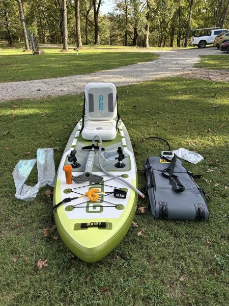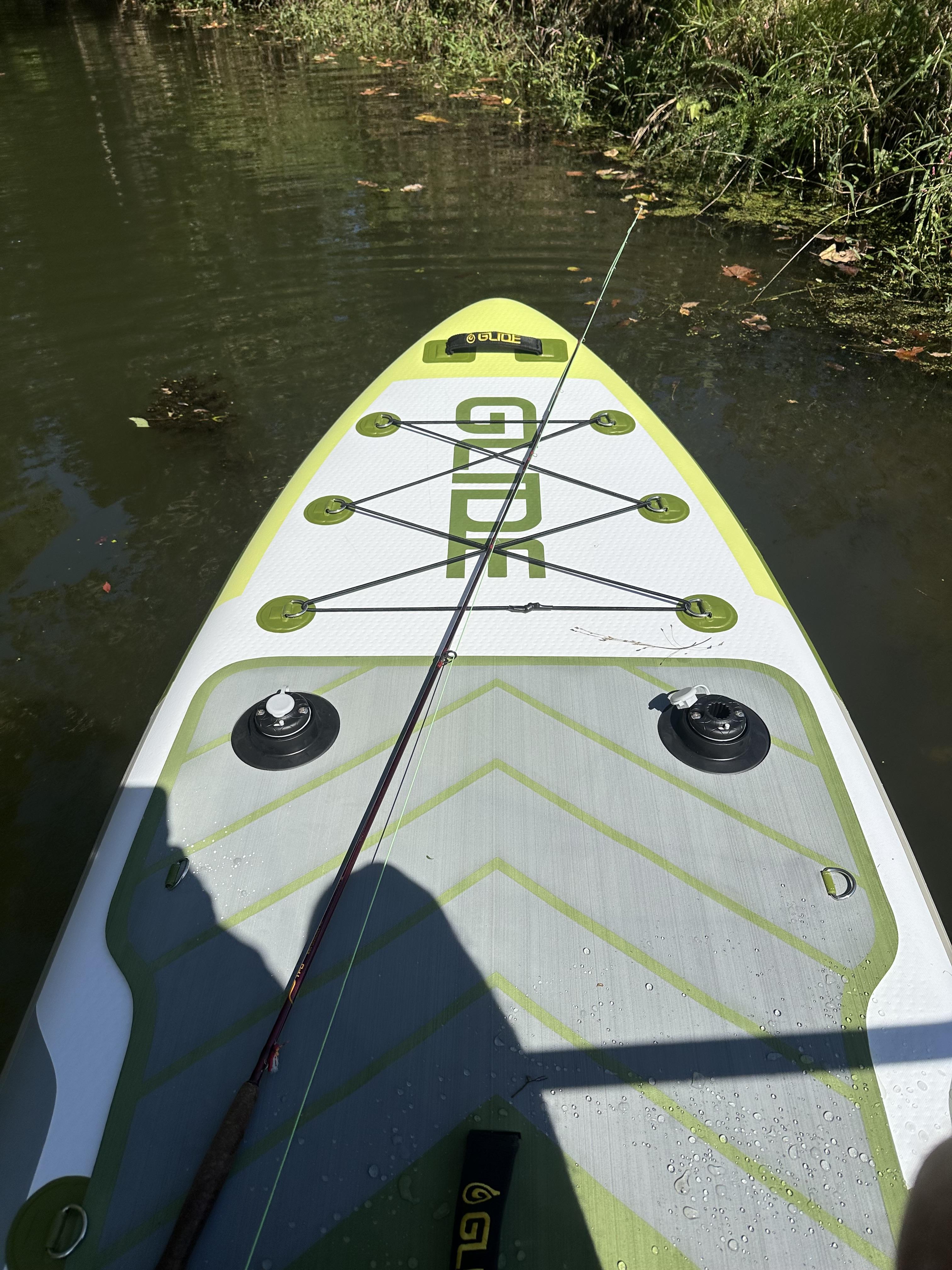 I’ve been frustrated by trying to fly fish from my yak. I feel like I am too low to the water and I struggle to make a decent cast. I wanted a way to fly fish waters without boat ramps. Sometimes from shore is too limiting. I started looking a Stand Up Paddleboards. Of course, I always get attracted to the Belle of the Ball. In the case, BOTE. I really wanted a Bote Rackem Inflatable. I think it has the best features, but the $2200 price tag was holding me back. I stumbled across Glide boats. It had many of the same features and was 1/3 the price. Since my first experience on a hard board SUP didn’t go so well, I had more than a little concern about this idea. My reasoning was that it came with an inflatable chair and worse case scenario it becomes a hybrid “yak”. My boat came in last Friday. It came with everything you need, but I did buy a rechargeable air pump to take the work out of inflating it. Pump can be set to your desired pressure and turned on. 6 minutes later, you’re good to go. I need more than 6 minutes to get everything else ready to go. My plan was to use my Yeti cooler as a seat with a standard boat cushion on top. I would move the boat from that position and (carefully) stand up to cast if I saw a good target. I decided Monday was the day that I would take it out and I wanted to target an area that was very frustrating to try and fish on foot. after a slow rigging process (that will improve), I got on the board. Some wobbles, but I stayed dry. Fairly quickly, I was on the board on the board. First fish on the Glide. well, The wind got up and really pushed me around. I was getting blown so fast that I was spooking fish as soon as I would spot them. I did manage to hook one Black Buffalo on fly, but I was using an 8 foot 5 weight and the fish was behind me when everything came tight. I lost it too quickly. Frustrated in that spot, I fought the wind for 45 minutes to get back to my launch site. I loaded up and moved to a less windy spot. Things came Back together much more quickly this time. I foolishly failed to spray on deet. The mosquitos waited until I pushed off and then swarmed me. If they had bit me at the truck I would have sprayed up. I will coat myself no matter what next time. Between swatting mosquitos and watching time fly by, I did manage to get a good take from a Bowfin. Nice strip set and then a long sleigh ride. I wore that sucker down before I attempted to net that fish. Really nice fight. I had survived my first encounter with a strong fish. I stayed dry and everything. I felt a lot more stable at the end of the day than I had at first. I think I will continue to improve. I have to work out some more details, but It was much nicer for the fly fisherman. Less line tangles. Better casting etc. I think this is gonna work out.6 points