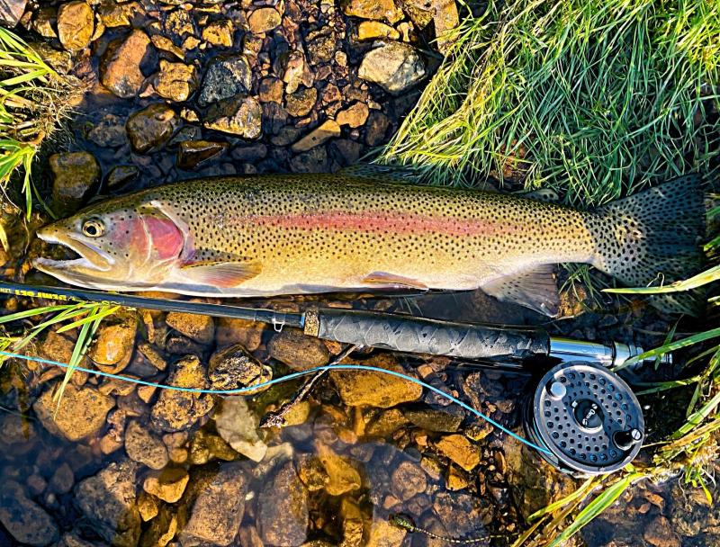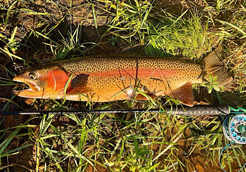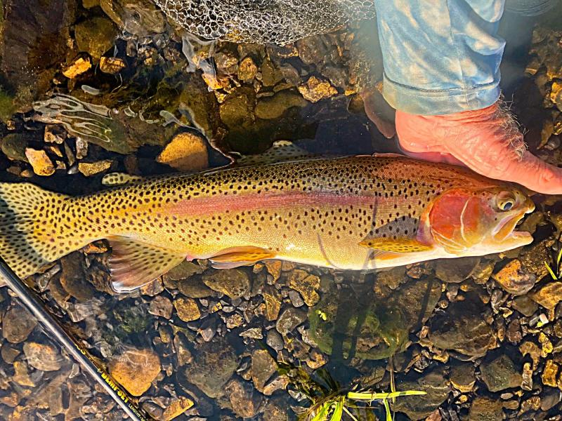 Had another good day with lots of nice rainbows and a few brookies. No cutties or browns this morning. Caught a few on the purple crackleback early and then switched to a scud. When the scud slowed down, I tied on an egg pattern and did pretty good with that. Here's a few of the better ones... biggest was 23".8 points