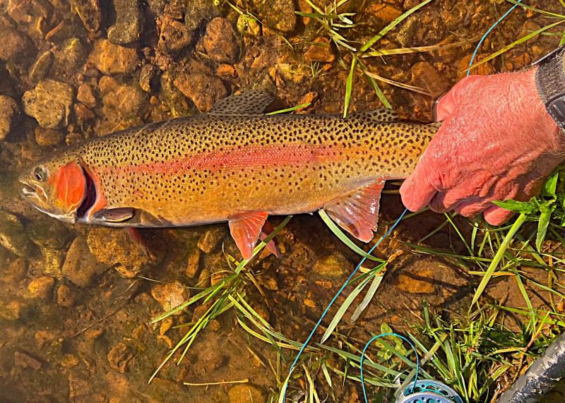 Flows have been less than 1 unit until early afternoon giving us lots of wading opportunities. Fishing has been good with lots of rainbows, a few cutties and more brookies than I have ever seen. They are almost a nuisance as they are pretty aggressive and sometimes beat the bigger fish to the fly. That was the case this morning when I was trying to sight cast to a nice cuttie, but 2 different brookies beat him to the fly. I finally got him to take the fly and got him to the net. Best flies today were brown soft hackles rigged in tandem.12 points