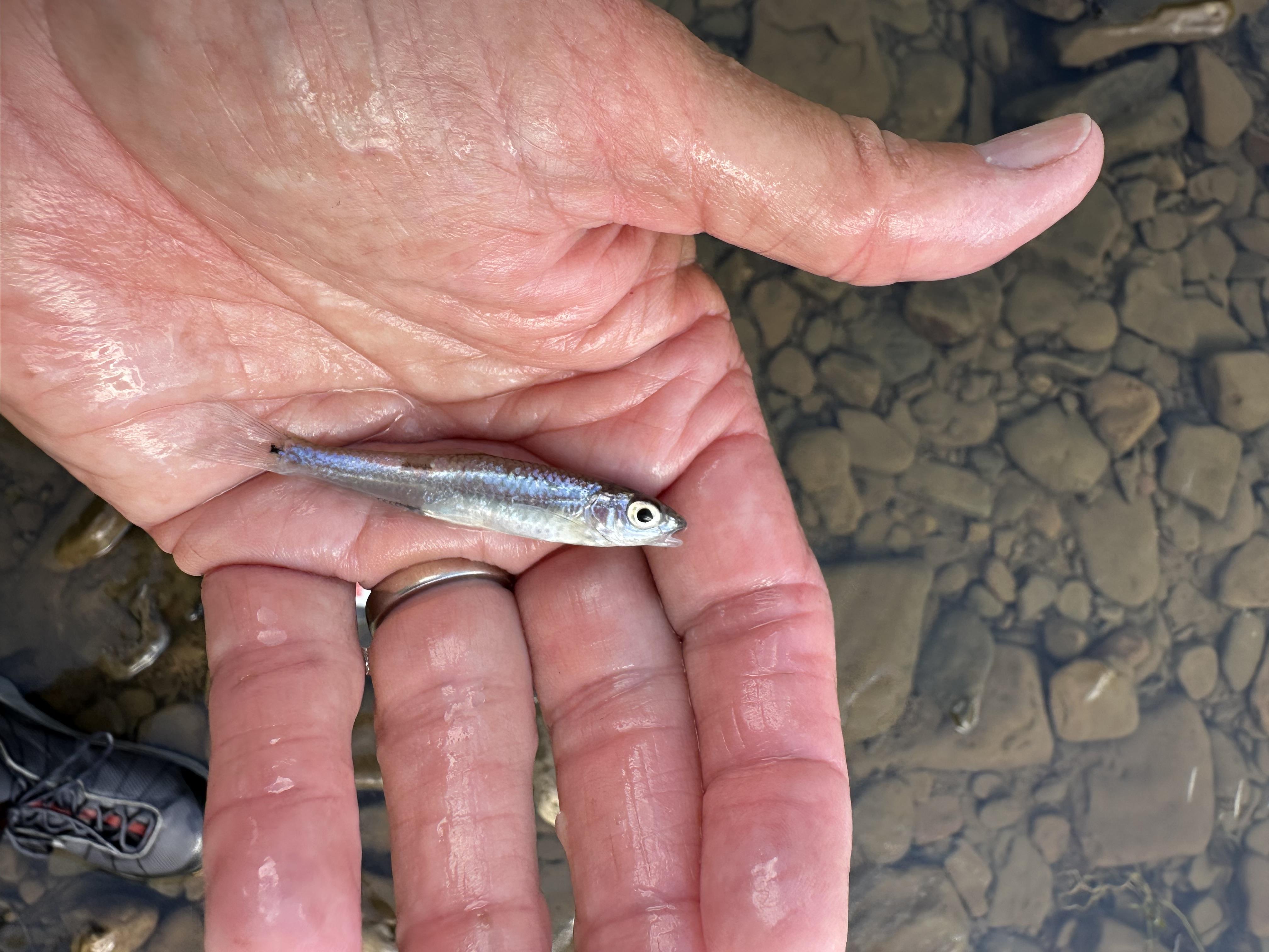 83) Steelcolor Shiner I made a roadtrip looking for a few micro species. I had two I was counting on catching and two that I was hoping for. I have a very reliable spot for Steelcolor Shiners. I was hoping that I could catch one in a few minutes, but it took close to an hour. đł oh well, at least it was a Big Pretty one (I caught several more smaller washed out ones at the next spot).3 points
