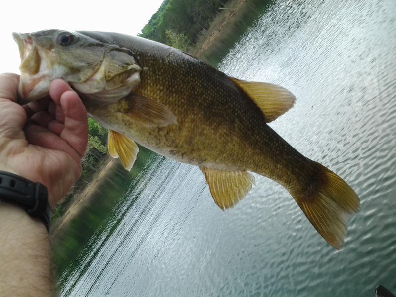 8. I slept in Tuesday. Didn't get to Mutton Creek until about 10:45am. Cloudy skies, water temp at the ramp about 49*, wind blowing like crazy. Ran up river just south of Chicken Rock and found 52.8* water and started fishing there. Started out with a Hula Grub and a Ned rig tied on and fished for about an hour with just a couple bites. While working down a gravel point we met a guy fishin' off the bank. He was throwing a little minnow bait and catching fish about every other cast. So.....I laid down the bottom bouncers and pick up my little ultralight with a little rattle bait on it and commenced to catching fish immediately. Thrashed 'em pretty good the rest of the day. Skinny water, high wind, fish biting like crazy.....Wow.