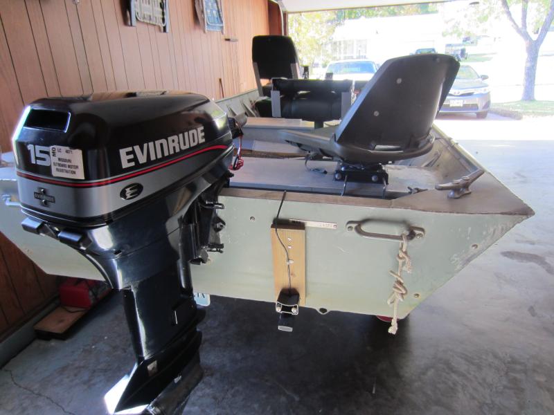 Nice fishing boat and wide enough that you can stand up in comfortably. Attached are four pictures. Can be seen in Mexico,MO. PM me for address and phone number if you need more info. Asking $2200.