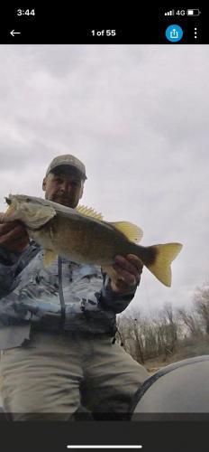I absolutely love river fishing in the snow! Caught 5 at my first stop from my ramp. The heavy cloud cover had em roaming away from the cover and very active for 40 degree water.