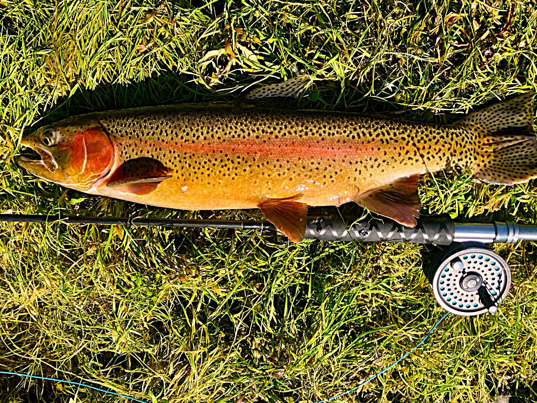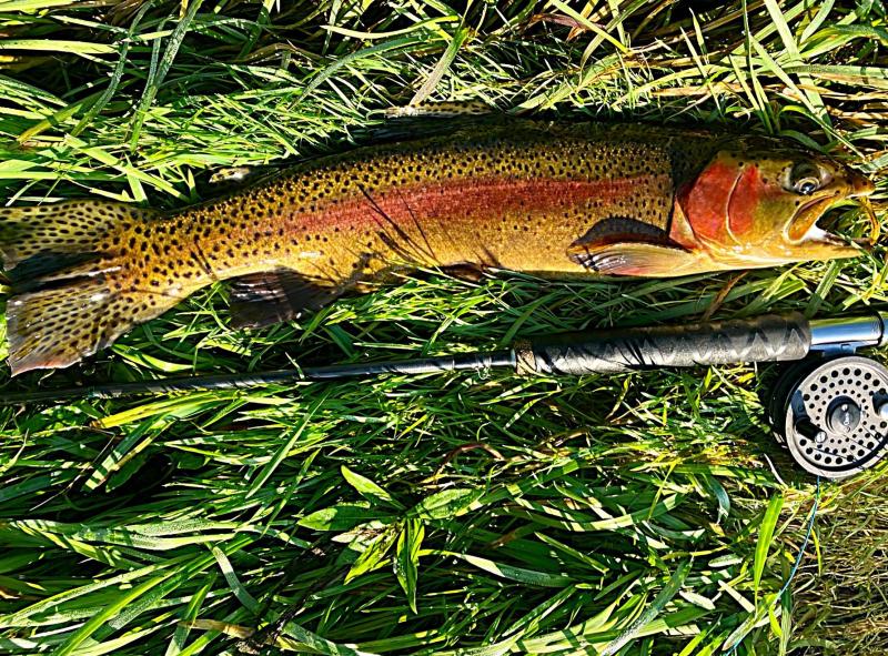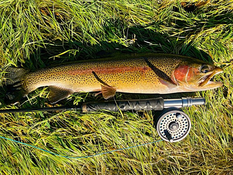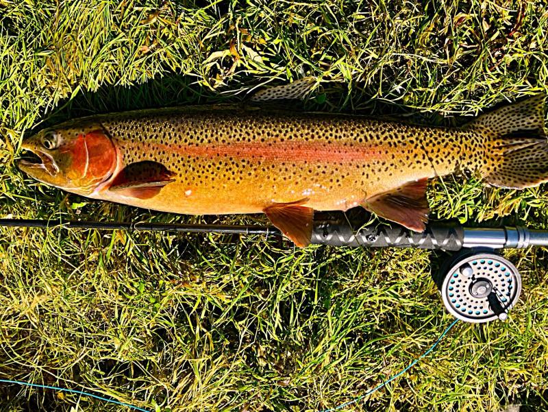 Had another good day with lots of nice rainbows and a few brookies. No cutties or browns this morning. Caught a few on the purple crackleback early and then switched to a scud. When the scud slowed down, I tied on an egg pattern and did pretty good with that. Here's a few of the better ones... biggest was 23".