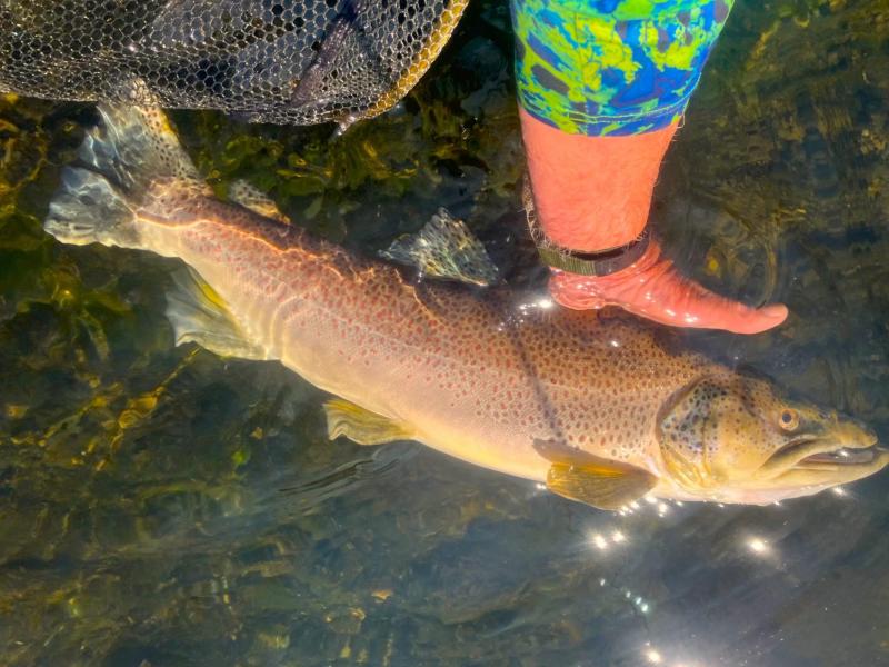 If you think bait fishing for browns is a good thing, here are a couple of dead browns I have picked up off the bottom of the river that would probably still be alive. Both had 3-4" of mono cut off hanging out of their mouth and were gut hooked. I was fishing above one of the sculpin bait guides and heard him say "we have a take, let him swallow it and then set the hook". You gut hook a big brown or any trout and think they will live after fighting them, probably not. Here are the results, both found dead on the bottom of the river. -