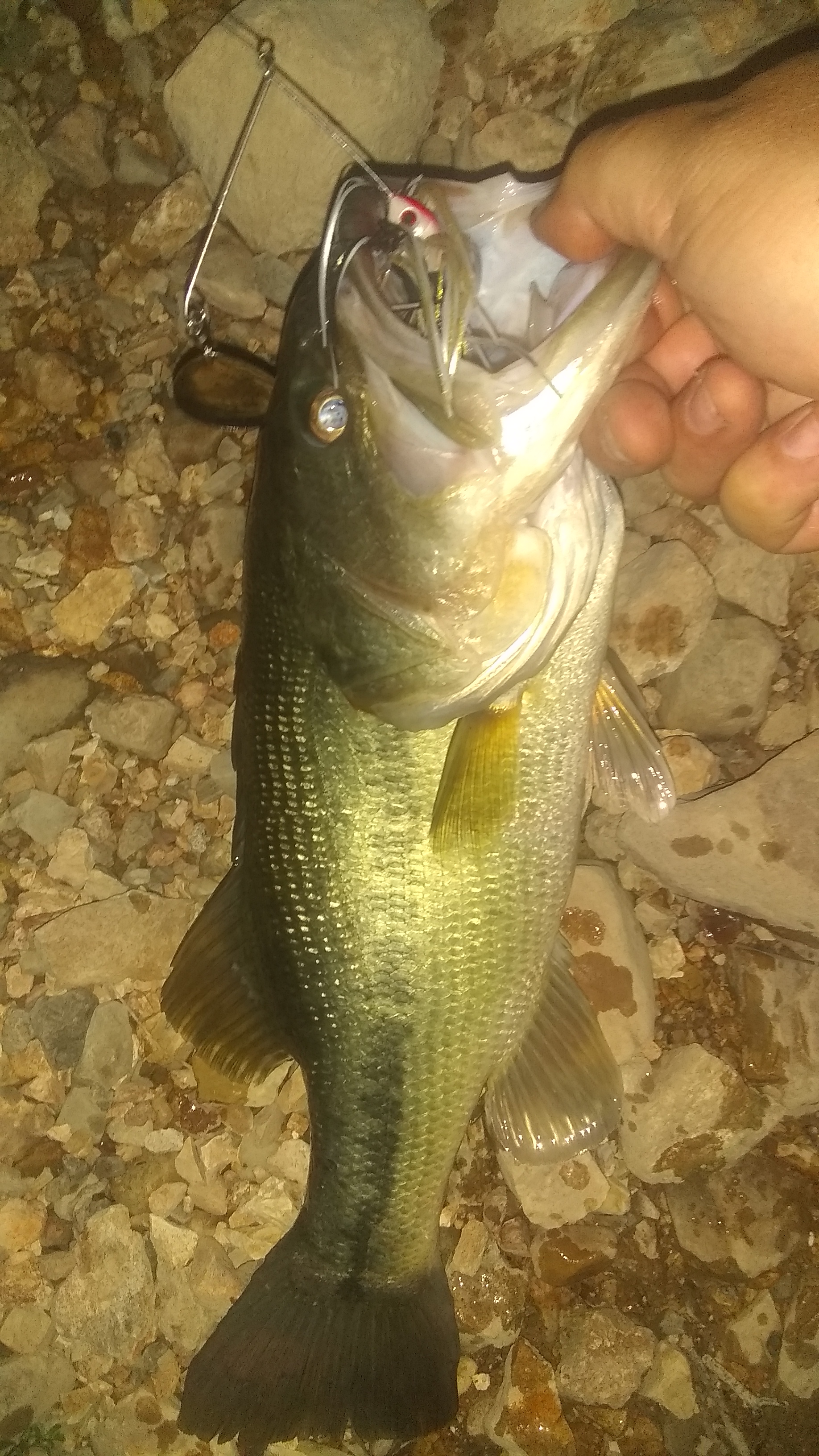 Fished from 9-11:45pm.. Throwing a single spin I made parallel to the bank. Caught 5, one picture didn't turn out it was blurry. all post spawn fish.