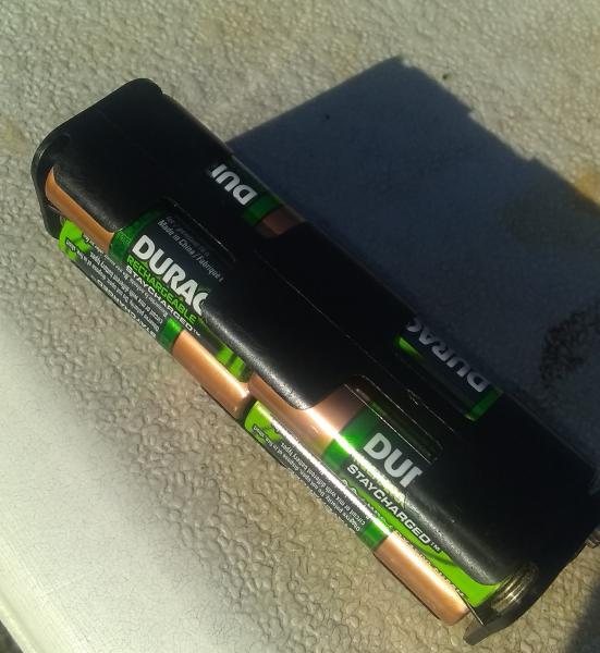 I use 8 AA re charegable batteries for that little unit. That 10v is after two days of fishing. That's about how long they last before a re charge.