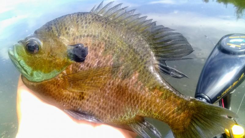 Fished from 2-6 WT 72 4-6' Homemade Micro jigs They were very aggressive getting bites the entire time. 95% of the bites were on or near the bottom. Here's a few pics to get an idea what I was into all afternoon. didn't keep track of how many gills were caught today but it was way over 100, anywhere from 4" to 8+" size. Look at the teeth on this one !βοΈβοΈβοΈβοΈβοΈβοΈ They were around the brush and debris so had to set the hook and reel like mad and keep em coming or these big ones would instantly wrap me up in the cover.