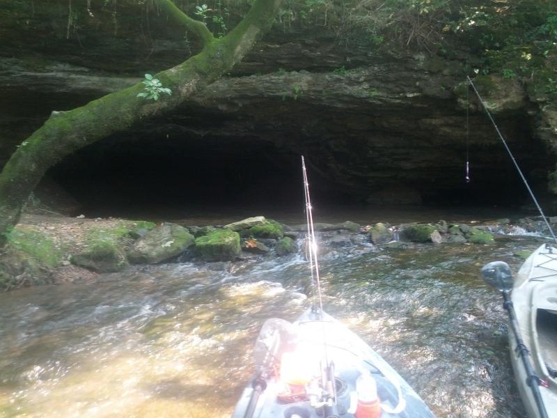 Floated this section with a neighbor. Both in kayaks. Never been on the James before, we live in town so it was close and a good way to kill half of a Sunday before football season kicks in. We figured it to be about a 4 hr float. We fished it pretty hard in some spots and paddled through others and it took 6.5 hours. Fishing was slow, water went from brownish green to green. Lots of foamy water in the upper mile or two. A good many trees in the water. One spot about a mile up from Twin Bridges is particularly nasty. Needed a chain saw to get through! The only other floaters we saw on the river were a couple man/wife in a large raft. They passed us within the 1st mile. I don't know how they ever made it through the trees in that raft. Lots of gar working this section. caught 1 smallie, 2 LM, a chunky bluegill and a gar. Nice scenery and it was amazingly quiet for being basically in town. A few cool caves along the way too.
