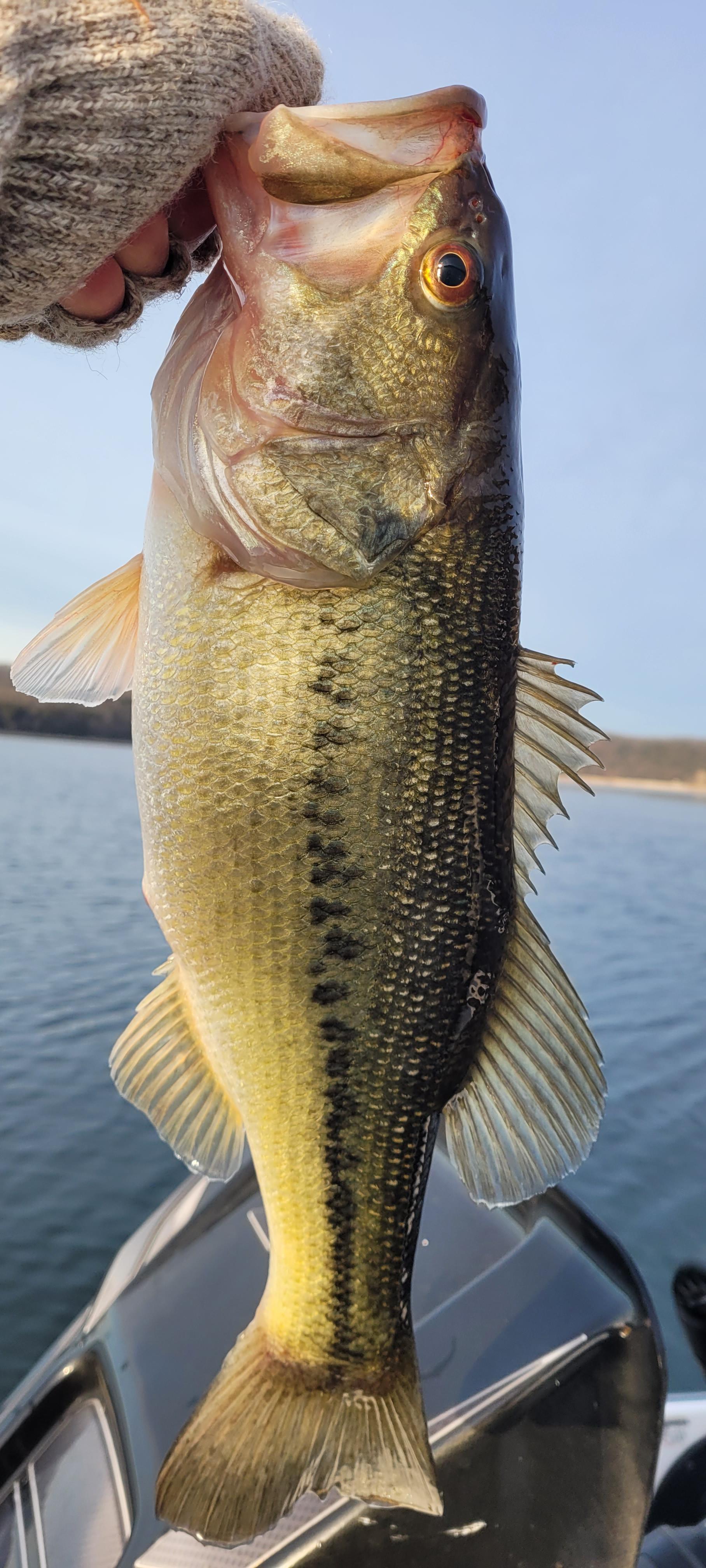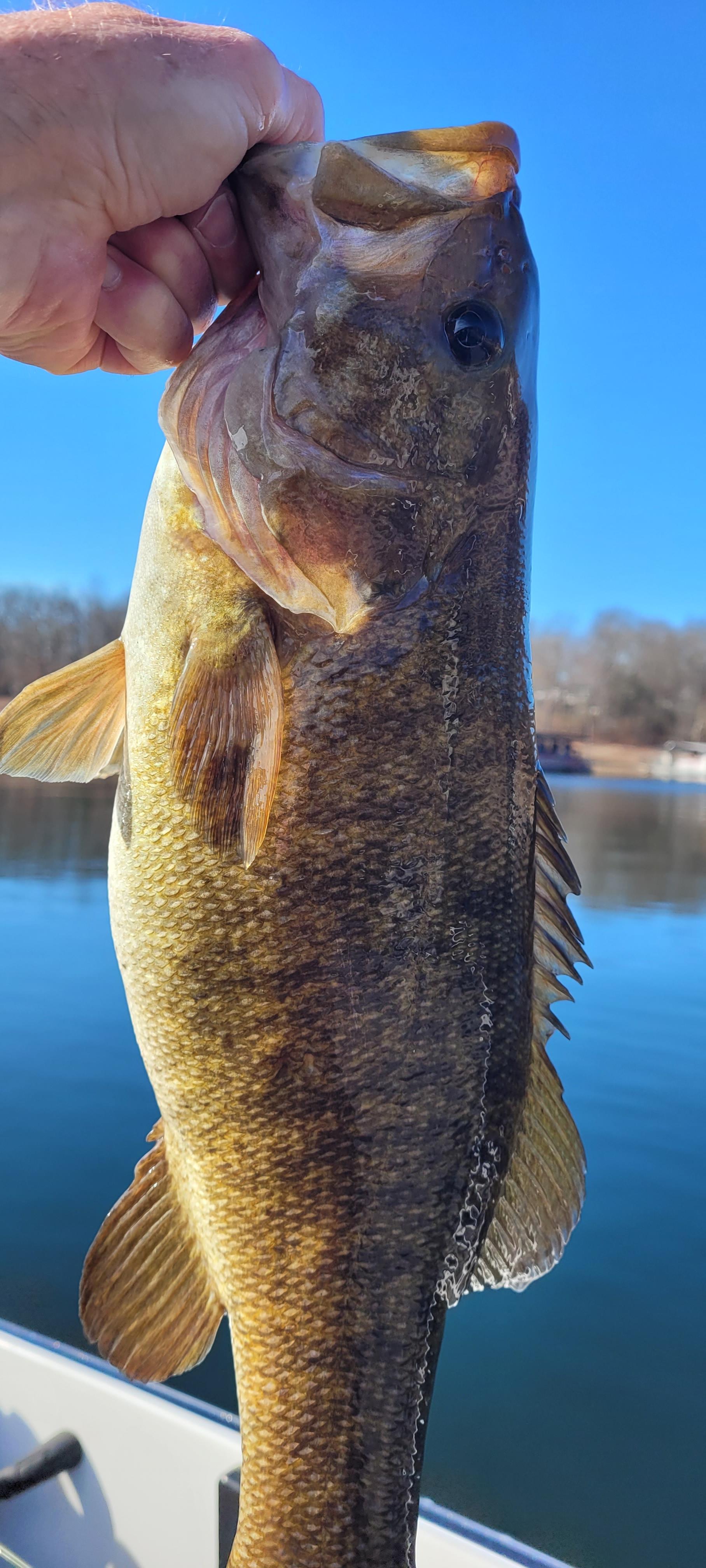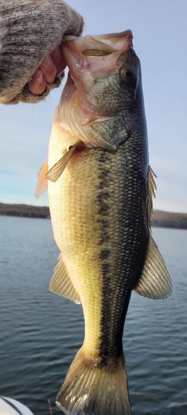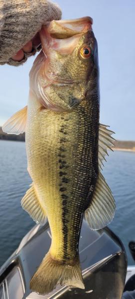 I fished this morning and the bass were plentiful and willing to bite. I started out on my 1st location at daylight and it was loaded with shad but I was not seeing many bass. I had about 20 loons approach my boat within 50ft and they all turned around and ignored the shad and went about their way. Then with each passing minute the bass started to appear at all depths and feeding on the shad. (Patience is key) I am catching at a steady pace and as usual the shad balls start to fizzle out but the bass are still feeding on shad I can not see on the graph with the exception of some surface shad. Then the loons return and they decide to go nuts which triggers the bass to capitalize on a feeding opportunity. Location #1 was deep main lake with trees and my boat was normally in 75 FOW and the fish were caught throughout the water column. Location #1 was very good until 9AM and then I headed to location #2 hoping it would produce a few more bites. To my surprise location #2 produced more than 20 keepers. This included a nice limit of SM, LM, and more than 10 keeper K's. Location #2 was a spawning cove with no trees and my boat was mainly in 30 FOW. The fish at this location had not been pressured and could be triggered in to biting real easy. They were feeding on shad near the surface. The best bait was a VMC moon-eye 3/8 jig head with a 3" Damiki Armor Shad. I caught fish on several baits but the Damiki produced about 85% of the catches. From now through March you have to keep all pre/post spawn locations on your check list. I have found multiple winter spots over the years due to bad weather conditions like extreme cold, wind, fog,,,,etc. Extreme weather will cause you to seek safety and comfort. And you would be surprised how the bass do not care what conventional wisdom has to say. WT 51.5