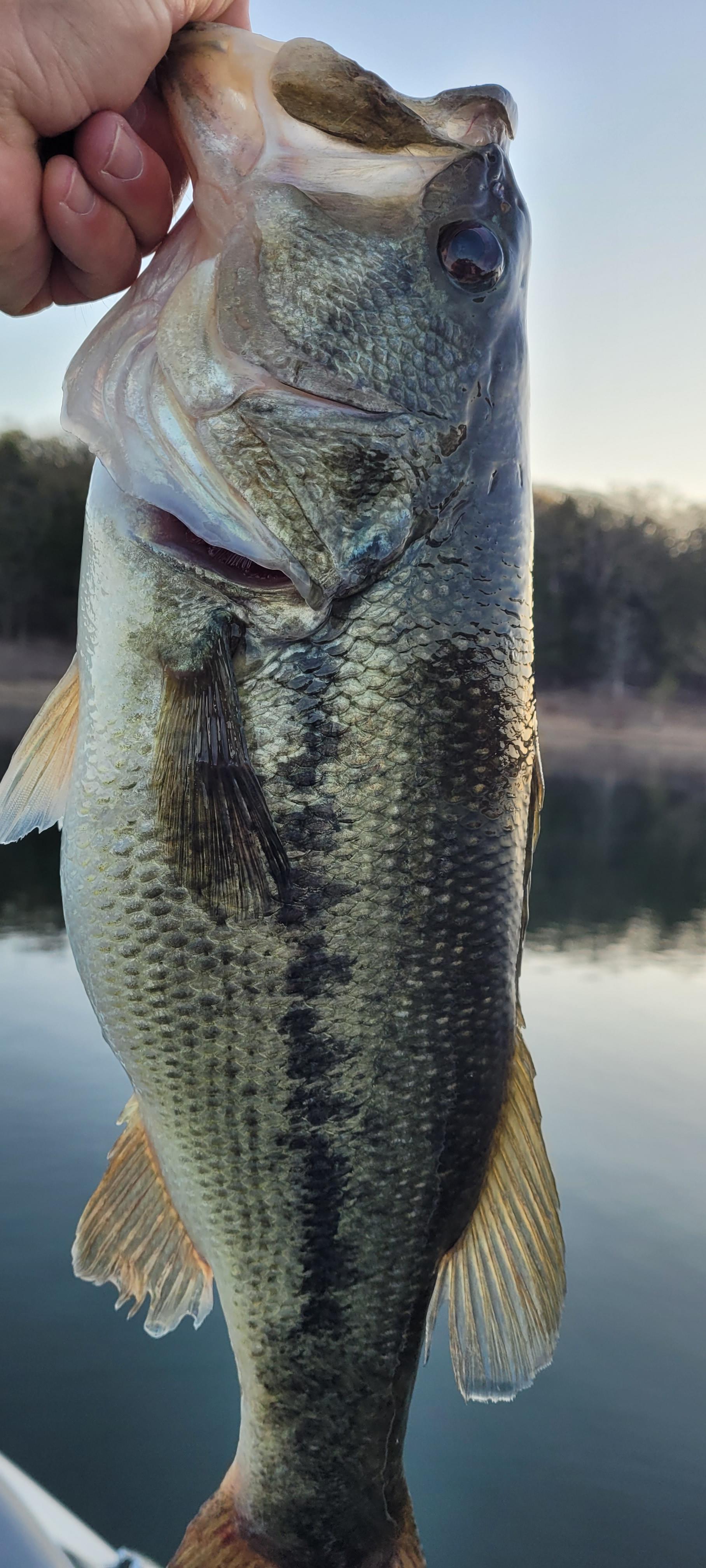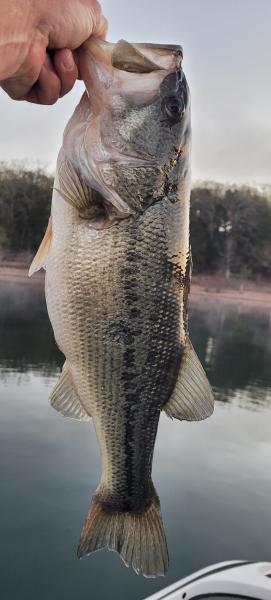 I fished this morning and lucked into a very nice LM bite around surface shad using a 3" BPS speed shad with 3/8 jig head with 2/0 hook. This combination is very efficient around surface shad. The speed shad is much more durable than the Keitech and the 3/8 oz jig allows for long cast. The surface activity stretched for 200yds and lasted until 7:45 then the shad disappeared and the fish were no longer grouped up... which made it tough. Had 10 nice LM while the surface activity was going on. Had a few 3# range K's along with several shorts. After the surface activity wrapped up I switched to the 2.8 Keitech because of the confidence factor. The Keitech produced several shorts and 2 fish near the 3# range. Milk run rotation is super important in the winter and early spring. Because a thriving area at daylight can look like a ghost town at 8:AM. WT 57-58