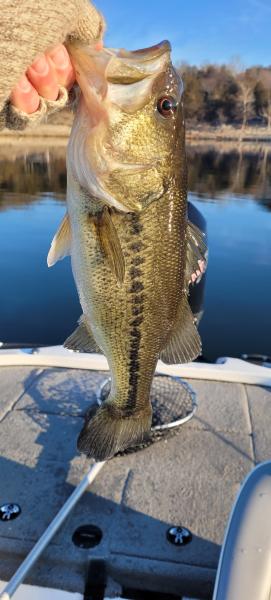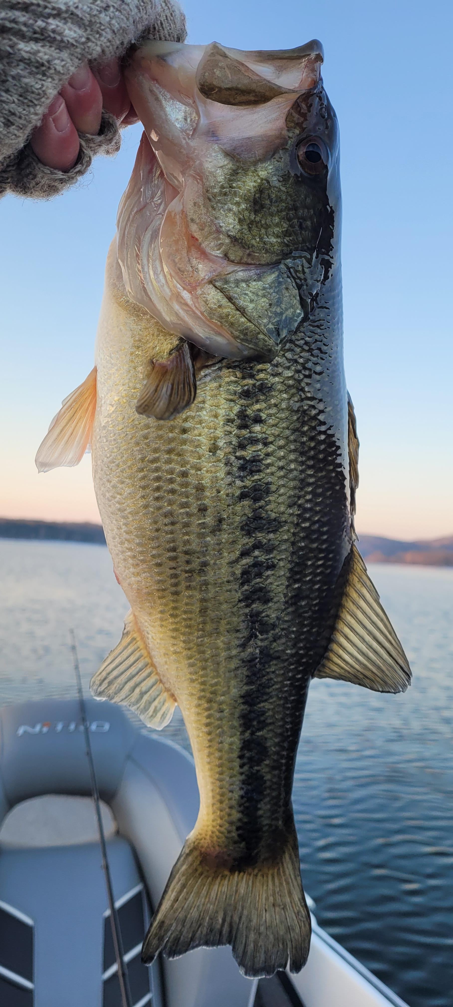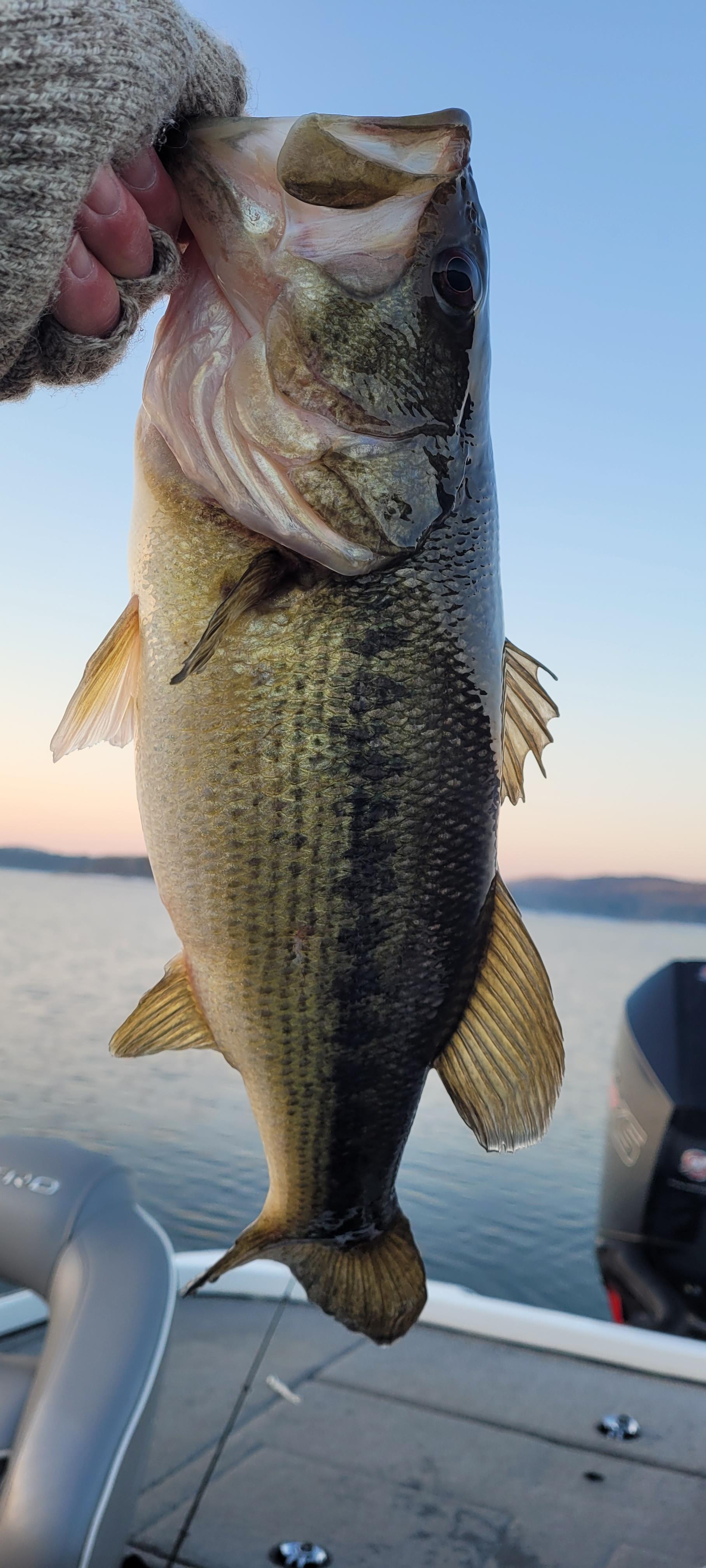 I fished this morning and the bass were plentiful and willing to bite. I started out on my 1st location at daylight and it was loaded with shad but I was not seeing many bass. I had about 20 loons approach my boat within 50ft and they all turned around and ignored the shad and went about their way. Then with each passing minute the bass started to appear at all depths and feeding on the shad. (Patience is key) I am catching at a steady pace and as usual the shad balls start to fizzle out but the bass are still feeding on shad I can not see on the graph with the exception of some surface shad. Then the loons return and they decide to go nuts which triggers the bass to capitalize on a feeding opportunity. Location #1 was deep main lake with trees and my boat was normally in 75 FOW and the fish were caught throughout the water column. Location #1 was very good until 9AM and then I headed to location #2 hoping it would produce a few more bites. To my surprise location #2 produced more than 20 keepers. This included a nice limit of SM, LM, and more than 10 keeper K's. Location #2 was a spawning cove with no trees and my boat was mainly in 30 FOW. The fish at this location had not been pressured and could be triggered in to biting real easy. They were feeding on shad near the surface. The best bait was a VMC moon-eye 3/8 jig head with a 3" Damiki Armor Shad. I caught fish on several baits but the Damiki produced about 85% of the catches. From now through March you have to keep all pre/post spawn locations on your check list. I have found multiple winter spots over the years due to bad weather conditions like extreme cold, wind, fog,,,,etc. Extreme weather will cause you to seek safety and comfort. And you would be surprised how the bass do not care what conventional wisdom has to say. WT 51.5