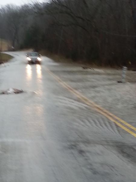 My friend took this pic and sent it to me yesterday. Hi camera lens was soaked so don't mind the poor quality. This was from yesterday morning when the Meramec was 2 ft above flood, and it was flowing about a foot above the bridge. He says they need to remove the culverts and put a proper bridge in (I know; money, money, money). This would make the road passable for all cars and keep it from flooding at this part, and also make it easier for fish to migrate up stream. Funny thing is below the culverts he said it's not as bad. A lot of flow and the water is still up, but the water is lower than what you see here from all the backpressure built up at the entrance to the culverts.