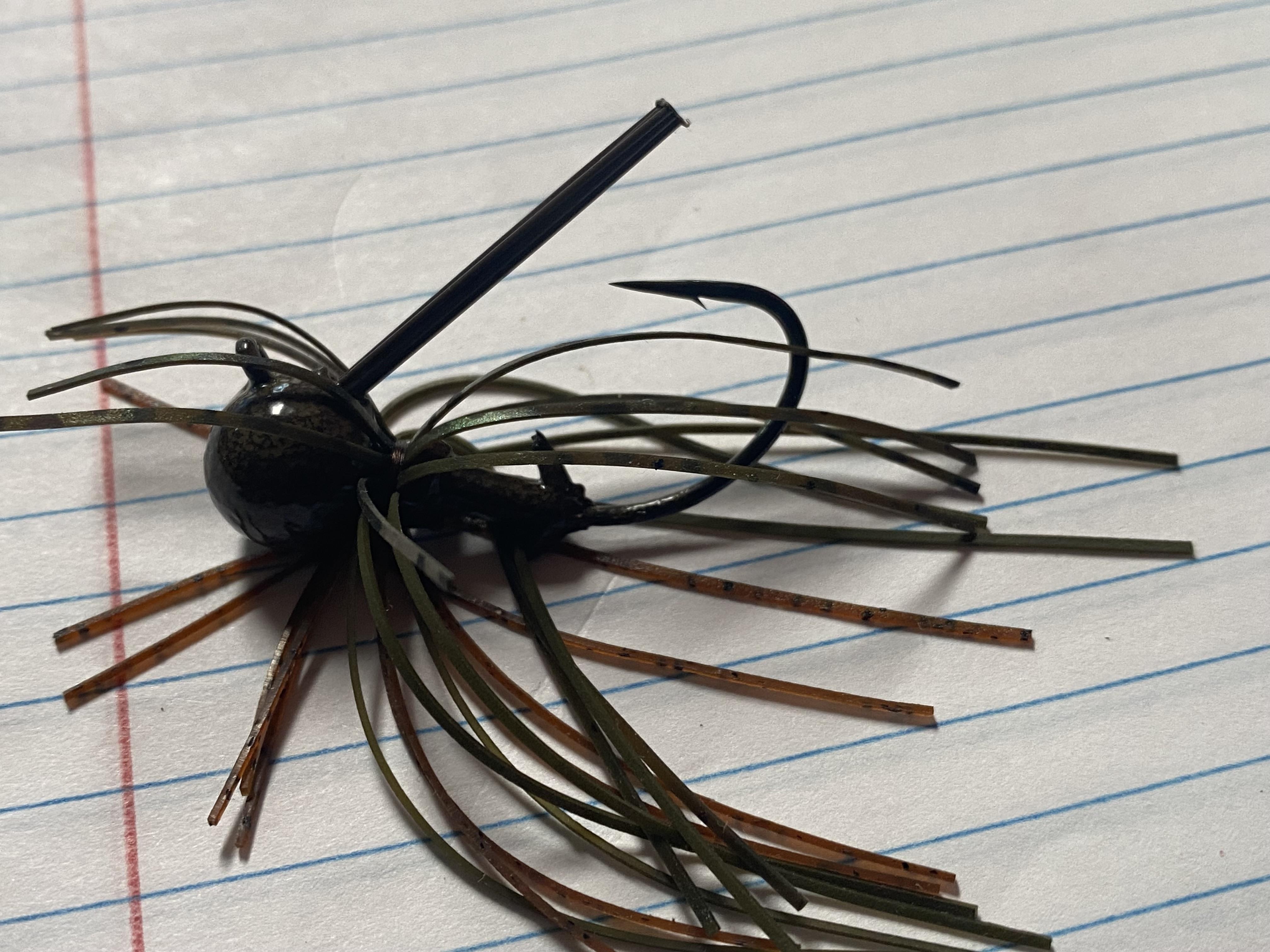 I need help identifying this particular jig. I want to say that it was popular in tournaments on LOZ at one time. It’s a compact ballhead jig with about a 12 strand skirt. It’s has a double keeper and a stout hook. Pretty stiff weed guard. The colors are identified on the package in numbers. (3, 7 or 😎 Any help would be appreciated if you can still purchase. Thanks