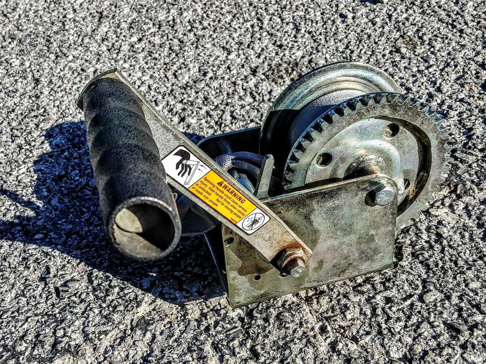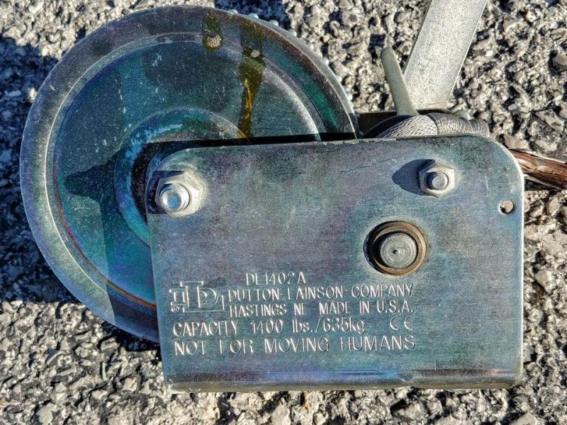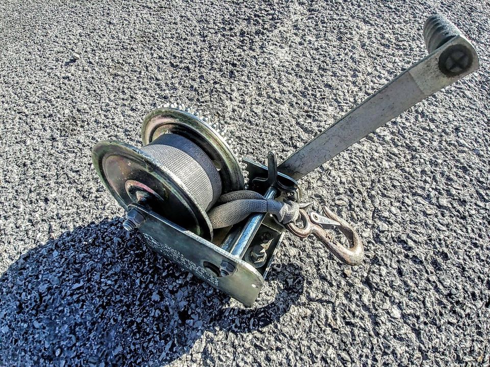 SOLD ! 10/31 Came off my boat trailer works fine. 1400 LB works with most boats or for use in the garage. Strap is tied to hook very secure. Two bolts(incl) attach to anything including its intended use on a trailer.. Branson Hills area. $20