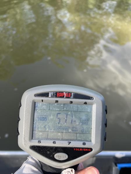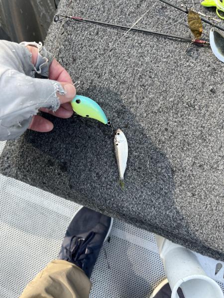 I was on the water before sunrise and wet at noon. Water temperature was 65 or 66 everywhere. Caught them all shallow, but never saw a bed or any fish that looked like it was trying to spawn or tail damage. Caught em like crazy until 11 or so. Water is a weird color. Like ice tea. Biggest was 5.31 pounds and 21”s. I caught a lot of keeper plus largemouth and 7-8 spots. No smallies. Tried top water and never got a sniff. you know you got the right baits when they absolutely choke it. I tink I was in a shad spawn.