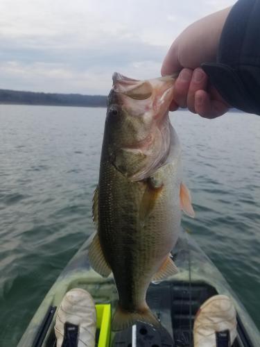 I put in about 7:30am and got off the water a little after 1pm. Caught 9 total with mainly small spots, but had 1 good spot, 2 good smallmouth and a nice largemouth. Largemouth was 17 inches, smallmouth were both around 16 and the spot was just short of 16 but fat. All but 1 came off of the same main lake point between 8 and 1030. Wind got to be too much for me to handle in the kayak after that and I found one little spotted bass around a dock with a teaser tube. Had 1 on a ned rig craw, but 7 of them came on the dark sleeper. Happy with that purchase, but the eyes fall off really quick and they are difficult to get out unless they are hooked perfect since they are so small. -