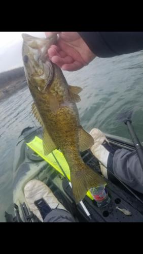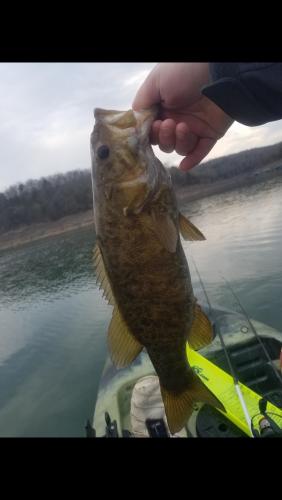 Dad and I fished fine addition on Friday. Caught 8 bass total but sadly this just shy of 15 inches smallmouth was far and away the biggest. Caught it on an a-rig. Not much valuable info to report. We didn't catch a single fish on the main lake including points. Only fish we caught were inside the cuts/coves. Saw a lot of boats fishing inside as well but also saw a lot of boats on the move. More boats than I expected for a Friday, assuming the BBT event on table rock had people move over to Bull. Other than an a-rig we caught 1 on a spinnerbait, a few on a tube and a ned rig. No bites on a jerk or chatterbait, dark sleeper and had one follow a jig to the boat before swimming off. Did see a few fish busting the top but was never more than one and they wouldn't stay up long. Water temp most of the day was about 53 and saw 56 before 5pm. Still enjoyed the nice day off and the sun was out almost all day compared to the reports of cloud cover. Of anyone else was in that area on the 5th I'd love to know how you all did.