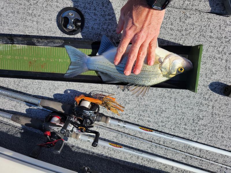 I caught my first white bass last weekend on Pomme de Terre using a crankbait. I was fishing for largemouths. I ended up catching three whites that day, a drum, and 7 or 8 largemouth. It was windy and I was in a kayak.