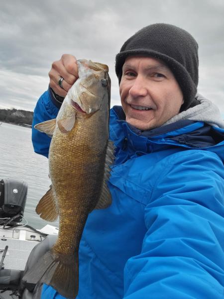I was out on the lake by about 10am yesterday morning and fished until 4pm. I caught 5 fish and lost two hooked fish. I also missed a fish on the jerkbait. There was a steady light wind with heavier gusts. WT was 41 when I got out there, if I recall correctly but was up to 45 by the time I came off. I fished along a flat and then some main lake points. I did not have much success on the main lake apart from the missed jerkbait bite. When I went back into some pockets is where I found baitfish and started catching some. I tried A-rig, jerkbait, spinnerbait, jig, Rock Crawler, and Wiggle Wart. I caught the fish on secondary points and in the back of the pockets. Water depth was literally right up on the bank out to maybe 10 ft of water. I need up catching fish on the jerkbait and Rock Crawler.