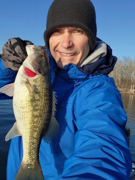 I was kayak fishing today from about 330pm until 7pm. It was pretty windy and so I fished up the northern end away from the main lake. The water temp was in the upper 50's. 57 and higher is what I saw on my graph. I threw a spinnerbait, Wiggle Wart, Rock Crawler, and Little John MD. I also tried a Vission 110+ jerkbait. I ended up catching 9 fish. Only one keeper...but it was a good one! I caught all the fish on the spinnerbait and Little John crankbait.