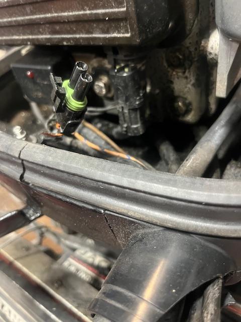started prepping to work on it tomorrow, when I pulled the cowling found this disconnected???? Sits behind the front cowling latch going into the EFI box??? Plugged in, latch fits? Guessing knocked loose removing cowling latch? (which I have to do occasionally to bleed the on tank reservoir, due not having "deleting" the oil injection system ...yet.. as instructed by @fishinwrench) -