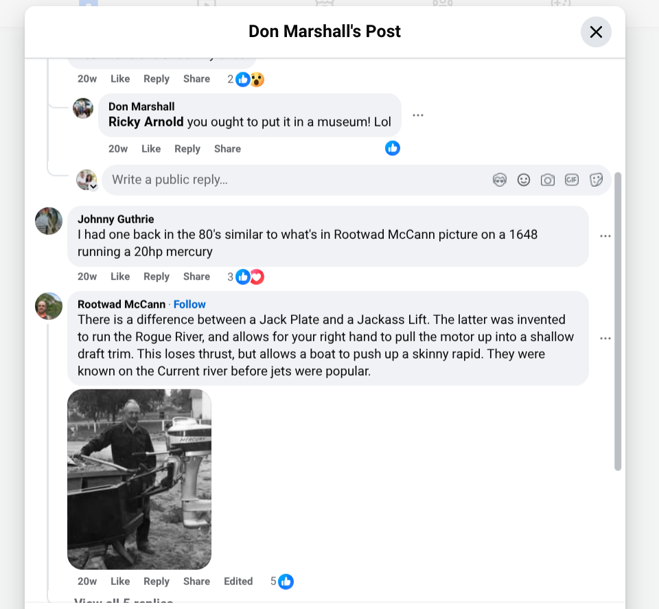 https://www.facebook.com/share/p/1DPTrjNmef/ I really hope this link works. It is on the Current River, Jacks Fork & Eleven Point River (Missouri Scenic Rivers) Facebook page. This is what I imagine you're looking for. I've seen them a couple of times on boats sitting in yards in River country. Also saw a trapper using one on a jon boat one time years ago up from Belle Chute on the Gasconade. -