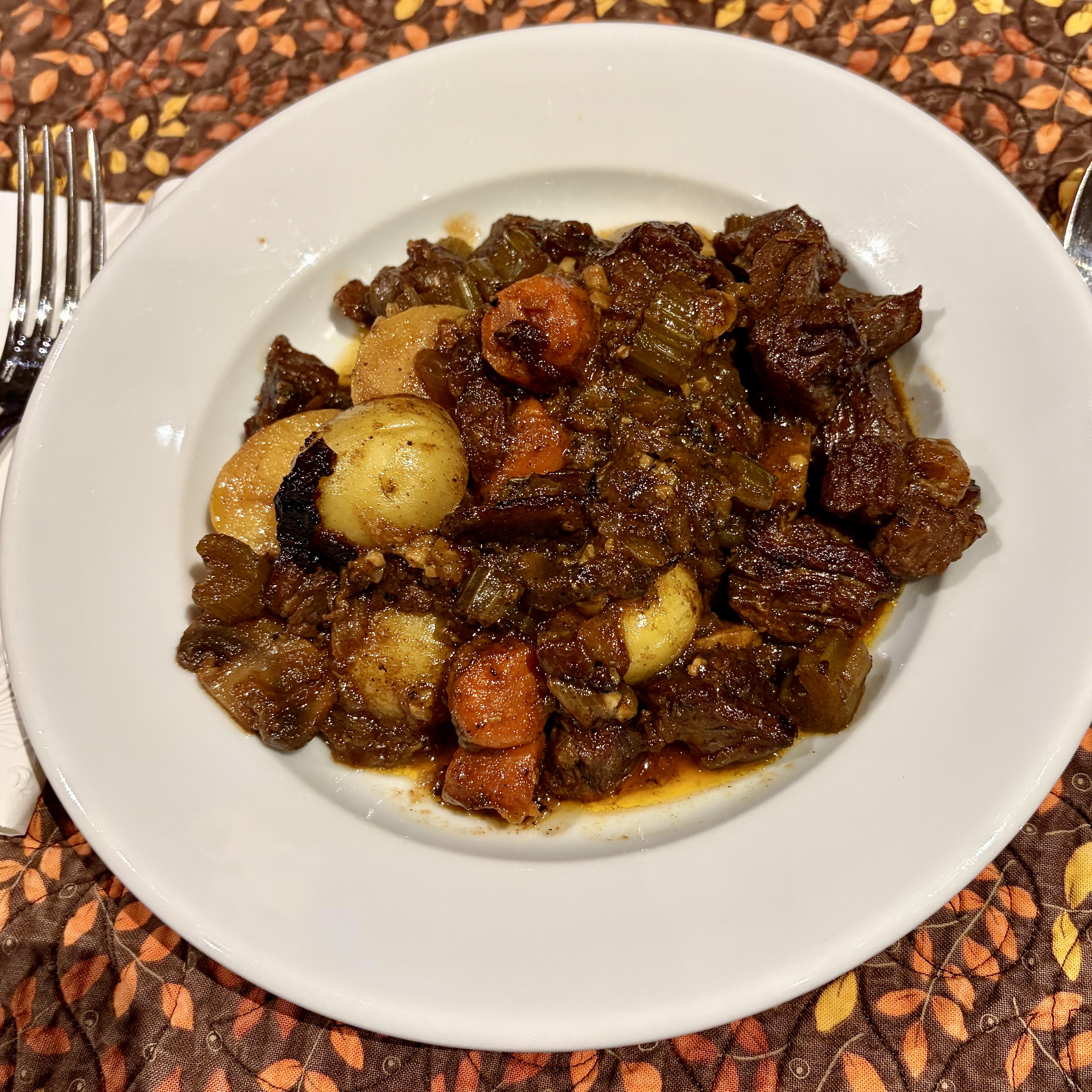 Meaty stew. Used skirt steak because there was no "stew" meat in the store. I may have to use it again.