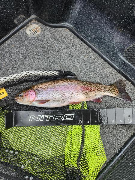 I am down for my yearly week-long trout fishing adventure...and this has been one adventure to say the least. PSA - don't bend down in an awkward way, as that will throw your back out in a heartbeat, come to find out that body part is important! Now back to fishing. The water has been off mornings, and the weather has been cool - that makes for some great jigging! Using a 1/32 maribou jig I was able to catch a limit in short order. Most were caught from the boat ramp just down from Fall Creek to Short Creek. Fish sizes have ranged from stocker to right at 15" All were fighters and released back to be caught again. Here are a couple of pictures.