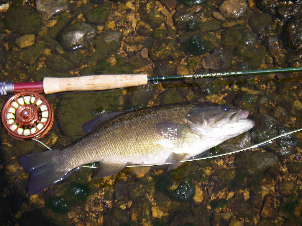 My friend and I fished from sunrise until noon between chutes one and two. I believe it was the first time I have waded Taney since January. Man, it felt great. We each finished with about fifteen fish a piece. The bite wasn't real hot but no complaints here. There was no specific hot fly, fish were caught with pine squirrel, ants, cranefly, woolies, scuds, San Juans, and eggs. We went down to KOA anf fished about an hour after all of that. I was in pursuit of large browns and caught my first smallmouth bass on a flyrod. I really enjoyed the battle. I used a TNA Trout and the fish measured 16 inches.