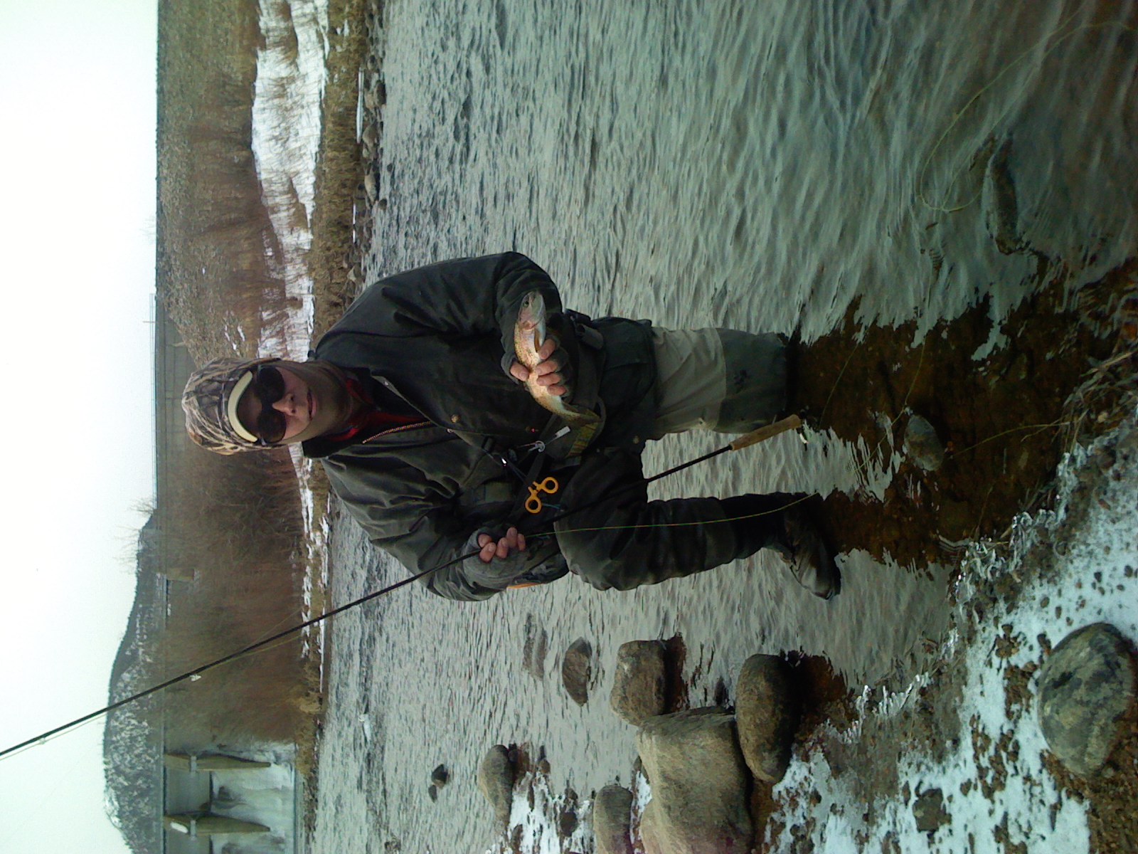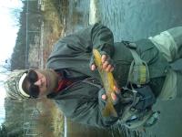 There are times when the power to catch fish some where other than your back yard will take over and you find you and your wife and a couple of buddies in a 60 hour time period travle all most 2000 miles. That is exactly what happen this weekend. The AFFTA show was being held in Denver I needed to talk shop with some of the leading manufactures in the fly fishing industry before our big move. So on Friday afternoon and I mean Friday afternoon we decided to go the show, I had to promise that we would fish and so on Sunday we found our way up to Rock Mountain National Park. If you have never been to a fly fishing show it is awesome and this one is open to the public. All the Presidents and owners of companies are there and they will take the time to talk to you. For tiers Bob Clouser and Lefty Kreh plus many more. Just about the whole US fly fishing team was there and very actively talking and tying. The one thing that I love about shows if you want to spend one day just casting evry rod that you can think of you might just get it done. I'm not sure how many Scott rods that Randy and I cast but it was a bunch and then the same was for Sage. It is a great show and I think that it will get bigger than the FFR show in September. OK on to the the fishing report We went on up to Estes Park on Saturday and fished the big Thompson below Olympus Dam you had about one mile of open water with a little bit of ice, then from there down it was very frozen. Duane had never been to Colorado so after a little tour of the town of Estes Park and seeing the Elk and watching me be stupid with one of the many pet elk in the town and wishing we knew where we could duck hunt, if there was one duck there must have been 5000 ducks in town. I just pretty sure that there were more ducks than people.. So we finally made it to the water to wet a line. The fishing was awesome I had three fish on Randy had 5 fish on and Duane was the big winner he had 17 fish on. Yep I would call it an old fashioned butt kick-en but to me I do not count the succes of the day by how many fish you catch just as long as you have a good time trying to catch fish. For flies we were using a primrose and pearl midge with red head Barbie underneath. Spot the fish and fish to them. I think that the biggest fish was about a 16 inch Brown that Duane caught. We did not arrive back into Springfield until 5am Monday. It was pretty funny we go from cold and snow one day to tornado's the next day. I hope that everyone made it through the big storms. Remember we are moving this week to our new location 2863 South Campbell Right next door to Fin&feather. Here are a few pics of the trip Michael