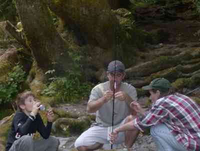 OK...OK, I know its not the Ozarks but what a blast we had last weekend when we did a family camping trip. We headed out Friday morning to the Duckabush River here in Washington State. Its a beautiful area about 8 miles in from the Puget Sound. We arrived at the campsite and my son made a mad dash for the river, pole in hand. He caught a couple of small brook trout by the time camp was established. The fishing is pretty poor in that area due to how hard it gets pounded by other campers. I told him the next day we were going to take a trail up river to try to get into some better fish. So the next morning after a huge breakfast of bacon, eggs and fried potatoes, we took off. The first river access on the trail was 2.4 miles and approximately 1000 foot in elevation gain. By the time we made it to the access area you would have thought I was trying to take them to the top of Mt. Everest. We fished several holes along that stretch picking up a fish or two here and there. I was sorta discouraged as I thought it would be much better. Apparently a lot of people had the same idea. Even though the trail was right next to the river for a good part of the way, access was quite risky (especially with the kiddos) as it was steep and I do mean steep. On the way out, I noticed a small brushy game trail that headed in the direction of the river. We decided to take it and here is where the fun began. It led right to the river with only a short drop off to the river. Safe enough. We started to fish the pools and we absolutely tore em up. A bite on almost every cast, and a landed fish on most of them. They were all wild brook trout about 13-14 inches long. What a fight on an ultra light with 4 pound test reeling them in upstream in a strong current. This continued on for about 45 minutes before we had to leave. What a great way to spend a little time with the family. Even my daughter got caught up in the action!!! Every fish was safely returned to the water to fight again.