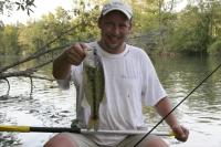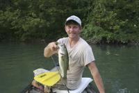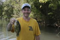 Floated a 3 mile stretch of Indian creek above Anderson today. The creek is pretty low but still floatable (only had to get out and push a few times). The fish were biting great but they were all pretty small. We caught about 9 a piece with only 2 in the 12 inch range..the rest were all about 8 inches. All of the fish were caught on soft plastics. Did manage to pull in a 9 inch goggle eye though. All in all it was a good day.