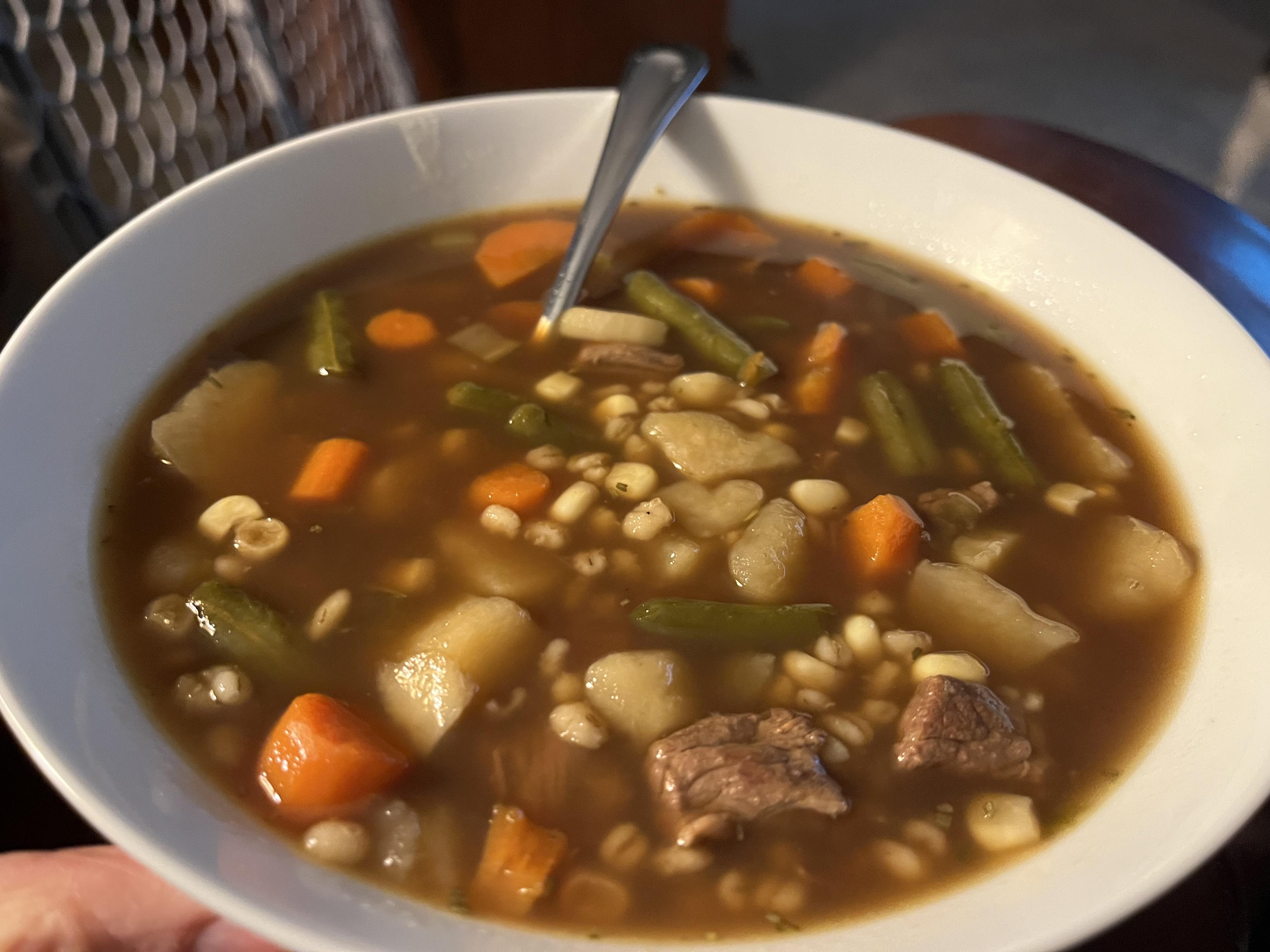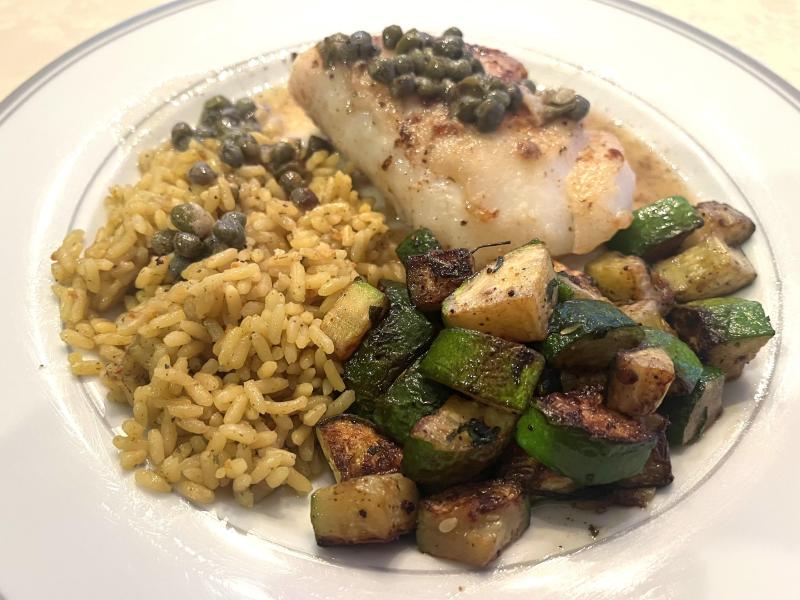 Made some from-scratch beef stock then a vegetable beef shoop. I love the next day when you just carve off a hunk of soup and rewarm 😀 Last night pan-fried cod with lemon caper sauce, zucchini and some rice.