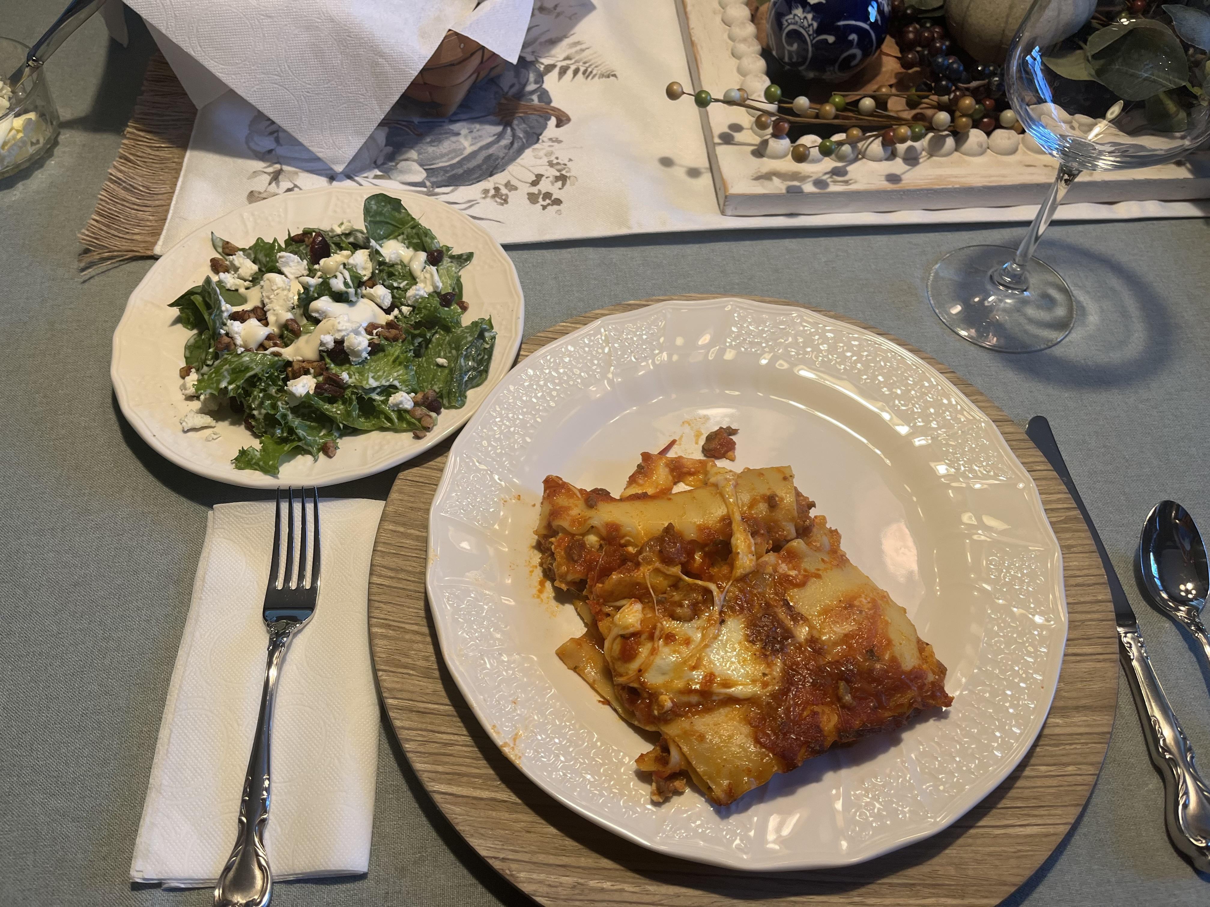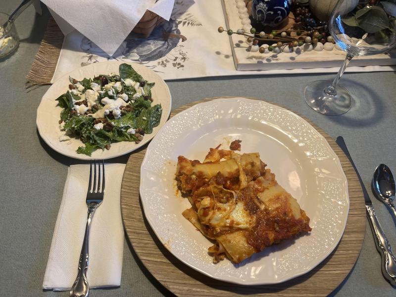 Fairly boring here too. We did have some friends stay with us this weekend so did a couple things. Haven't made lasagna in a long time. Recipe right off the box. And a standard breakfast casserole.