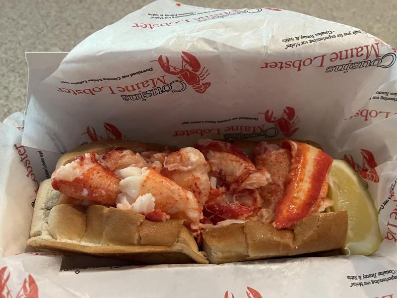 I had to run out and pick something up today and there was a Cousins Maine Lobster food truck out there, and I hadn't had lunch. Last time I saw them there was a really long line that I wasn't going to wait through. Something like an hour they said. Today, no waiting, so I bit. No prices on the menu, but I thought, 'How much could a lobster roll be?' $26 is how much! Oh, and an auto tip of 20%, which they didn't get. Ouch! It was darn good though.