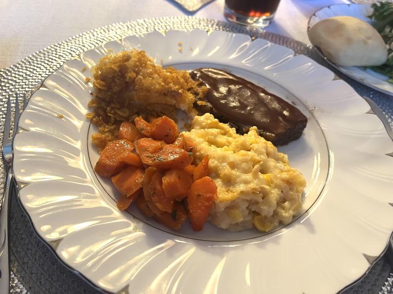 I like cabbage rolls. Sadly. SWMBO doesn't care for them so we never make them. A couple recent ones from here. First, Christmas Eve dinner. Star of the show was baby brother's strip loin and sauce. Sauce makes it look like a pile of chocolate pudding, but there's beef under there. Couple family-favorite casseroles and bourbon maple glazed carrots. Christmas morning tradition, B&G New Years Eve carnage New Years morning indulgence