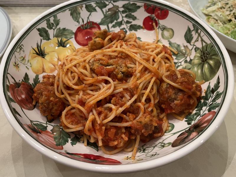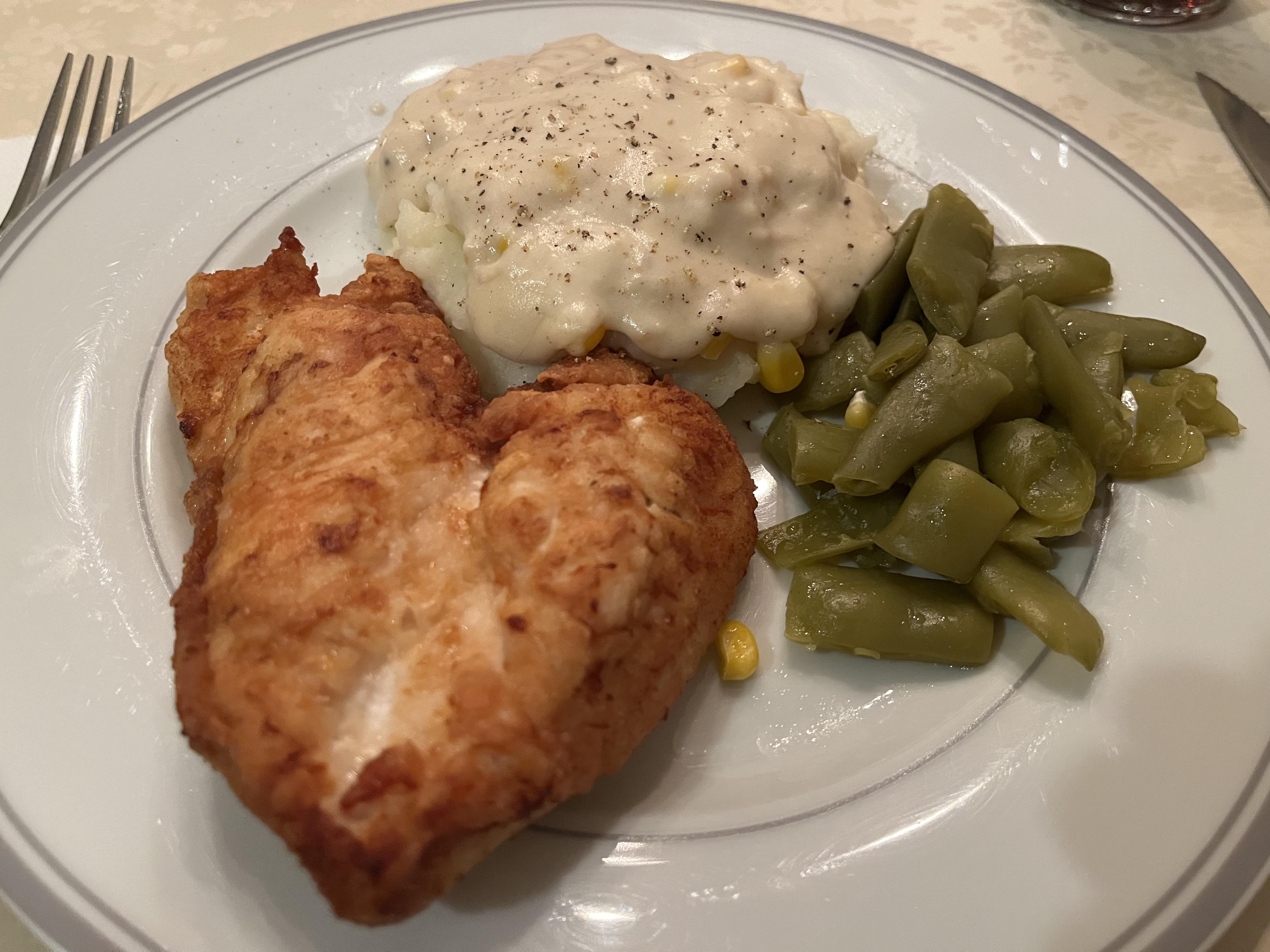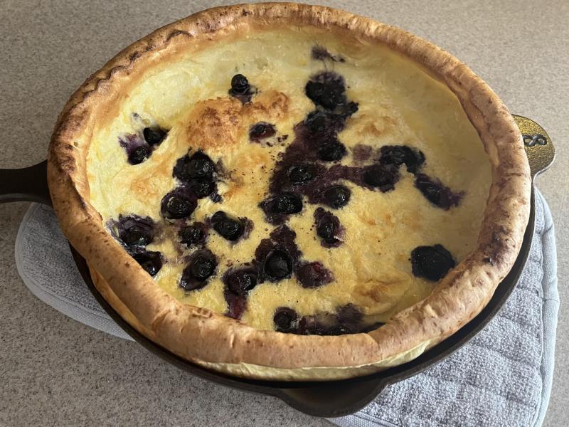 Still cooking over here. Several faves lately: fried chicken, etc. meatloaf, pasketti and meatballs, seafood chowder and blueberry Dutch baby.