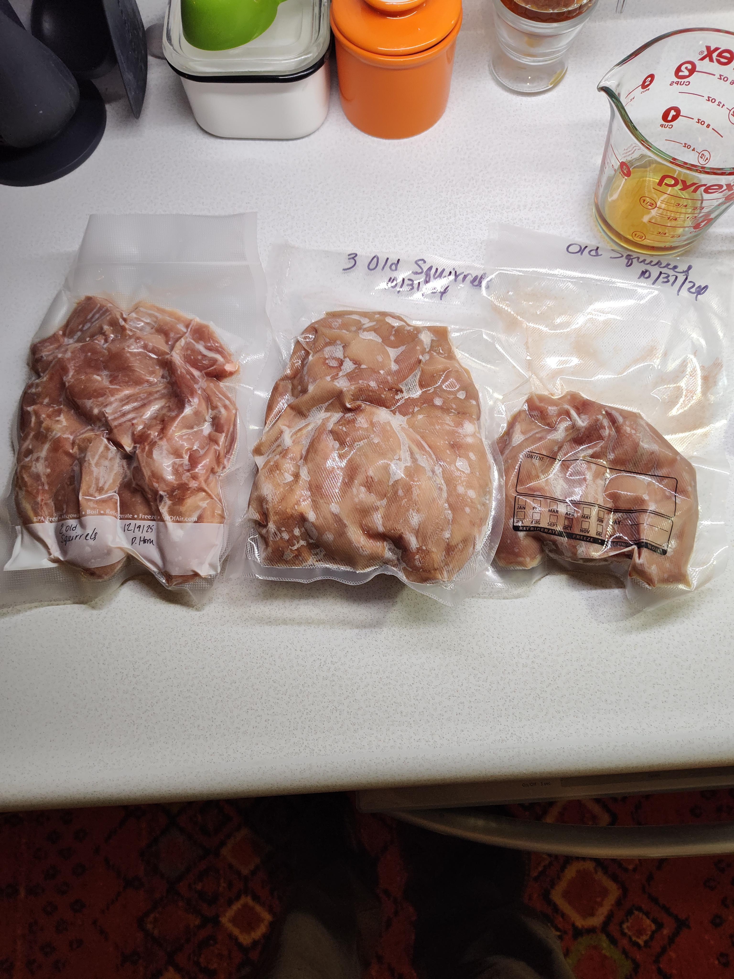 Of course it's not snowing yet but have two big Fox squirrels behind the house looking for food at 20 degrees. Falling the rest of the day. I believe critters can anticipate what is going to happen. Ready to hunker down for a few days. We are thawing out eight of their family for squirrel chowder.