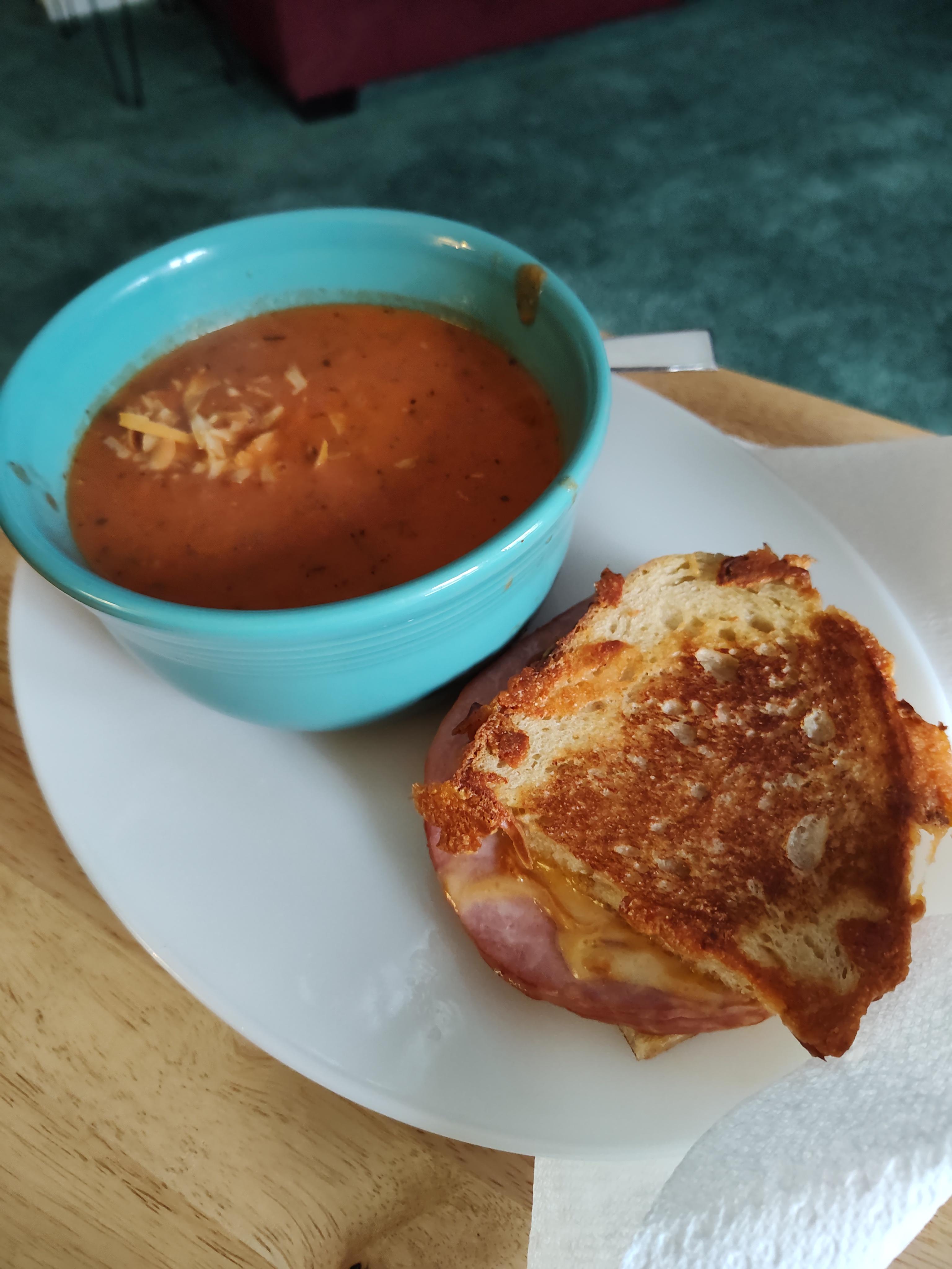 Yesterday Pat made tomato bisque soup with grilled Ham and cheese on sourdough. Just got finished whipping up some butter and honey. A topping for anything you please 😄. While making this I was smelling some chicken and wild rice soup on the stove.