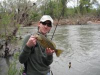 5. Started the day around 7:30am and finished up around 11:00am. Focused on fly fishing and caught a mixed bag of Longears, Smallmouth and Spots, total number around 12 or so. Flow was normal and the water was stained. Nothing doing on top yet, hopefully it will heat up soon. Best fly was #6 wooly, ginger or olive. Fish of the day, 16.5" smallie, came on casting gear rigged with a phantom green crayfish wiggle wart. Good luck and take care.