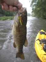 I floated from Kerr to Galena last Saturday. Slow day over but caught several smallmouths,which were released safety back into the river, and a few rock bass. My son had his first double. Two largemouths on the same lure, a Rebel Bumble Bee. Something he will never forget