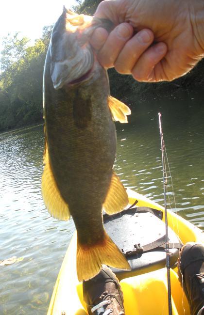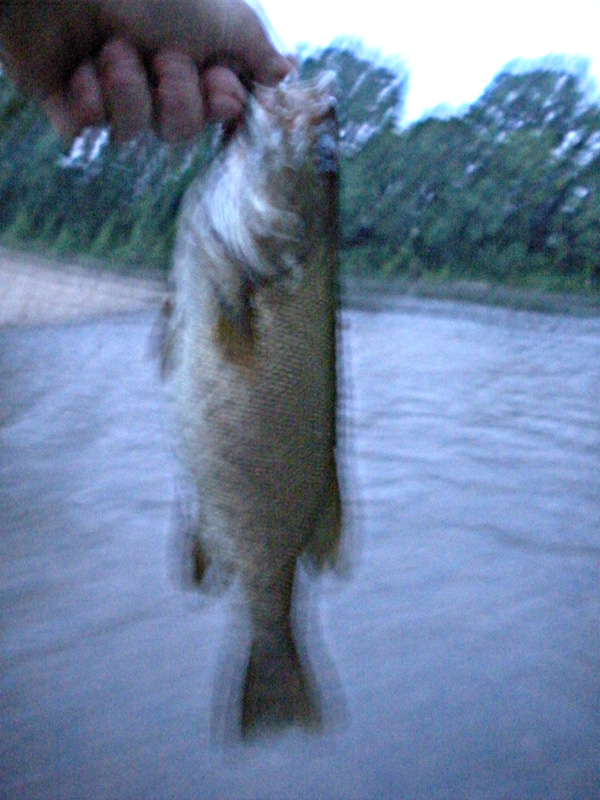 I thought it might be too hot to fish today but, no work equals had to fish. The river was a little low for my yak today. I had to walk a little down the Finley. Put in around 6 am. I didnt catch a fish till 7 am. I caught some nice google eyes, a few smallies, a small largemouth, and a hungry catfish. They were hitting on grasshoppers, bumble bees, and bombers.