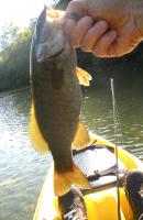 Took the kayak out around 6am Saturday morning to check out a couple of changes I made, add a paddle holder. I caught a few small ones and a few larger ones, and took a couple pictures. Only one white. Of course all the fish were released to fight another day. I was using yellow and bass colored bombers and Joe's Flies. Over all it was a great first trip out this year.