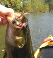 I took the kayak out Friday morning 8/27. I called NRO the night before to see how much they would charge me to park my truck at their campground to take out. They said come on down and they charge $2. The wife put me in at Bennett Spring around 7:30 am. I tried rooster tails, mepps, crawfish, grasshoppers, and nothing until put on a white bomber. I caught a few of these, a couple those, and some others.I even caught the carp on the bomber. Nothing big but a nice time on the river. Only saw 2 canoes the whole day.