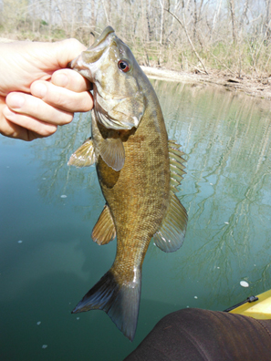 I went out Friday, dressed as if I was going to shovel snow, 38 degrees, but it turned into a beautiful day. I had the same luck as htwo82 did, and only caught sunfish, goggle eyes, and some small smallmouths. So the only pictures I could take was of the river and one pretty little bass