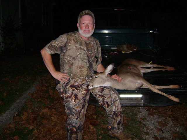 slider Posted November 14, 2008 Posted November 14, 2008 I killed the doe on election day and the buck tuesday. This made my third kill of the year on deer. I was hoping fore a bigger buck but I had to try out my new lighted knock. I had been looking at these lighted knocks but couldnt see paying 10 bucks fore them. I saw a video on U-TUBE where you could make your own, so I got all the stuff and put one together took it out to the yard and shot it afew times it worked so I was ready to let one fly at something. Saw turkeys as soon as I got out but no shot. About 4:45 the buck came to the food plot, he stoped under a persimion tree and started picking up persimons funny thing happend then he started sneazing. He sneazed about 10 times and keep shaking his head, he picked up another one and did the same thing again. I think he must have got ahold of some green ones! He moved in to about 15 yards and I leter fly. Made a bad shot hit him high but hit him in the backbone and he went right down. The funny thing was my new knock never came on, I was kind of agervated but did Have a buck on the ground. Good luck to all this weekend sounds like its going to be cold opening day fore gun season. SLIDER DONT EVER GIVE UP MOSES WAS A BASKET CASE ONCE!