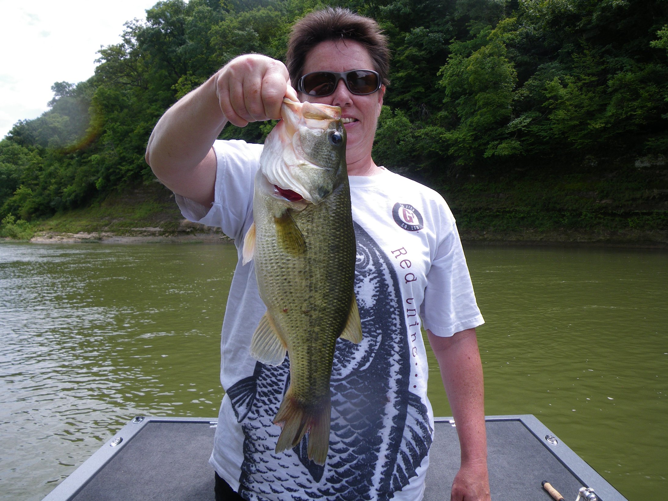 Bman Posted July 19, 2009 Posted July 19, 2009 Got out somewhere On The Meramec for a little fishing with Donna. She usually fishes for Pumpkinseeds & Gills with 2 lb test. She caught this nice Largemouth on her ultralight rig! And this fish jumped several times and took her around some wood. Thanks to a humble yours truley, and some expert boat handling, and a quik grab...we high fived after I snatched the fish for her. A couple pics for the scrap book and a quick release. I caught....... a Drum oh well felt like a Smallie for a little bit.... A beautiful day today ,on a senic stretch of river. The only good line is a tight line