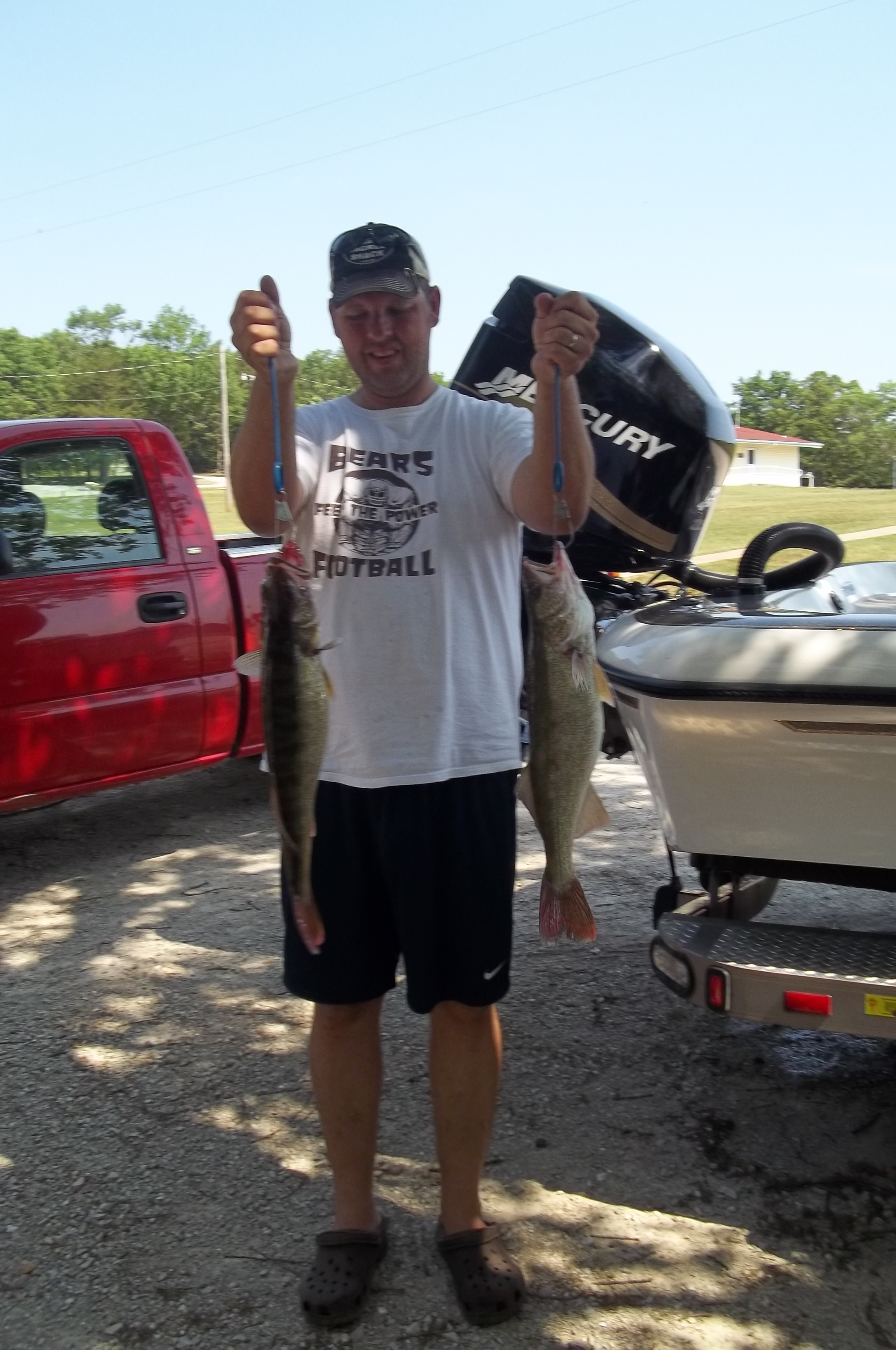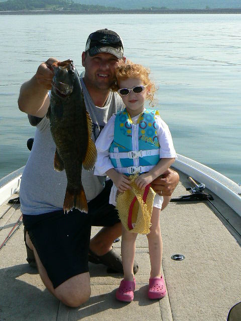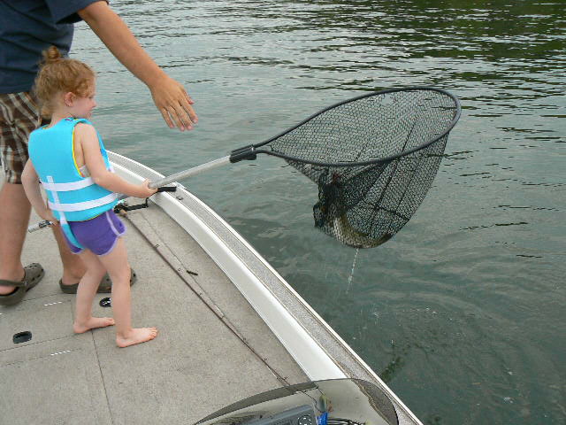 fozzype Posted June 19, 2011 Posted June 19, 2011 I just wanted to say thanks to Bill for the Jig Bite Info. It has helped and hopefully this info can help a little. Pulled the camper and the boat from Ozark to Branson for the weekend. Took my guide out for our second annual fathers day trip. As you can see, she is excellent with the net. It just doesn't get any better than having your family with you Put in at 5:15 both days at State Park. Absolutely the best two mornings I have had on the Rock. On Saturday killed the smallies on the jig, DD22, and War Eagle Spoon. Had two smallmouth that were weighed over 4 and one 5 - 9 oz toad. My best smallie on the rock to-date, 23 inches long 6.5" top to bottom on the FB jig at 5:30. Anyway, had to be very, very, very close to deep water while setting the boat in 12-30' nearby. Channel swings or straight channel does not matter. Started with smallies on the football jig then kept seeing suspended fish on the graph 10-15' over 25' to 30'. Started bombing the DD-22 with a stop and go retrieve and for about an hour it was just plain stupid with a 50/50 ratio of smallies and K's. The smallies calmed down about 8:00 AM and then the K's moved over the channelbreak and suspended with the shad. Starting throwing the spoon under the graph and continued to cath fish until about 10:00 both days. After 10, they just shut off. On Saturday ended up with an unknown number of keepers, 15 white bass, and 7 smallmouth greater than 18" long. On sunday caught less keepers but simply hammered the 14" K's on the spoons and caught two 24" walley in sight of the dam on the FB jig (go figure) Also, on Sunday my dad showed up and fished. What a great weekend ! All the bass were returned unharmed, the walley and whites were not so lucky. This report won't win any money, however it can attribute to a good time. This makes you forget all the bad days. B. Foz